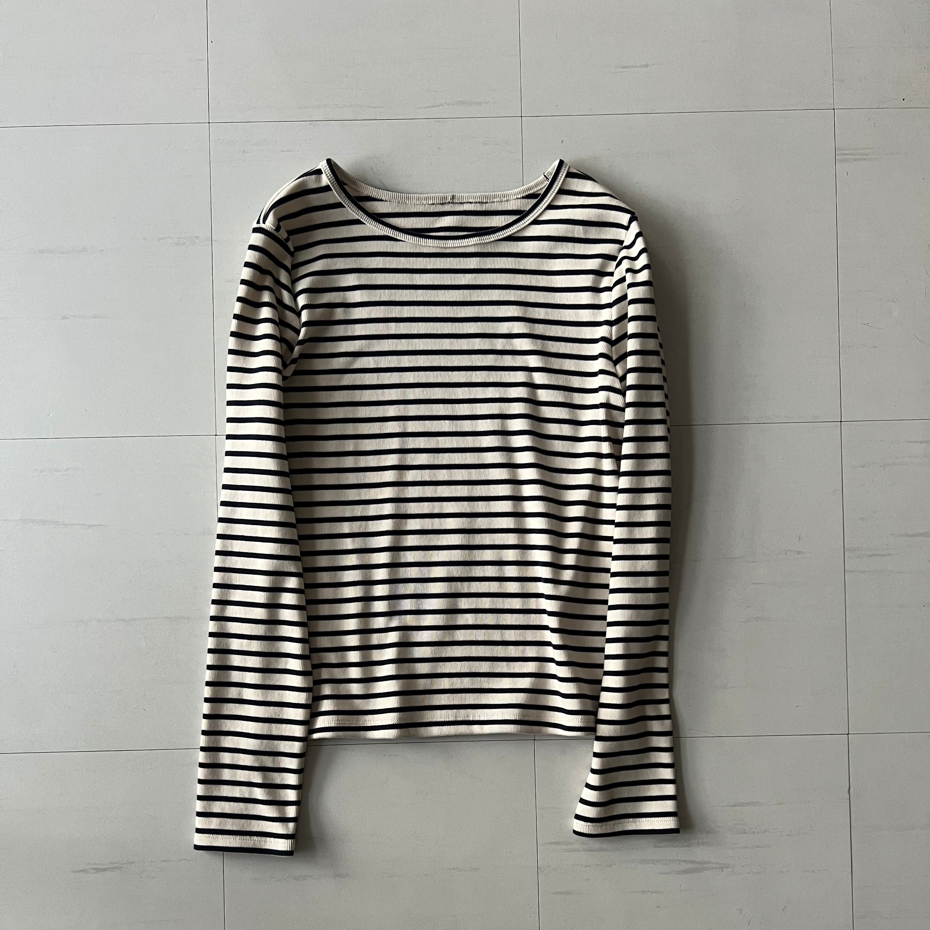 生成りにネイビーのボーダーです。