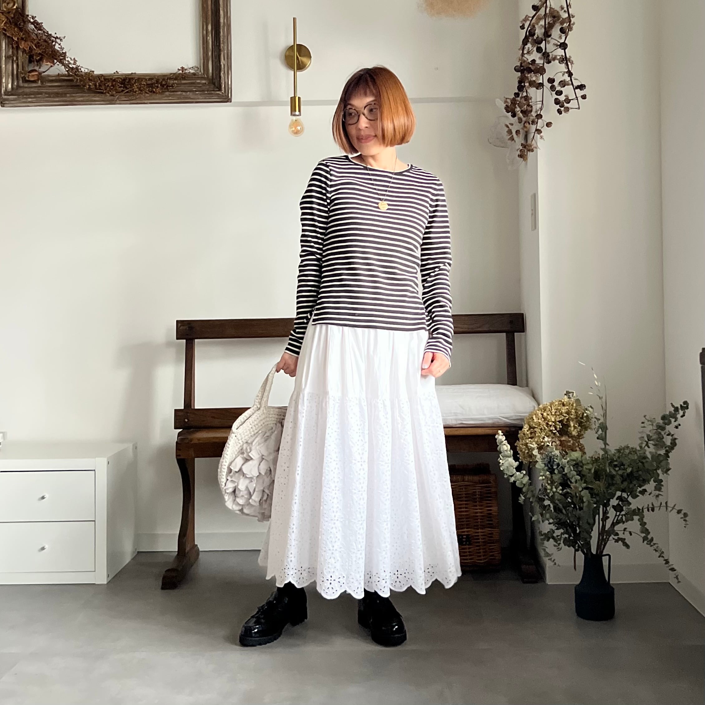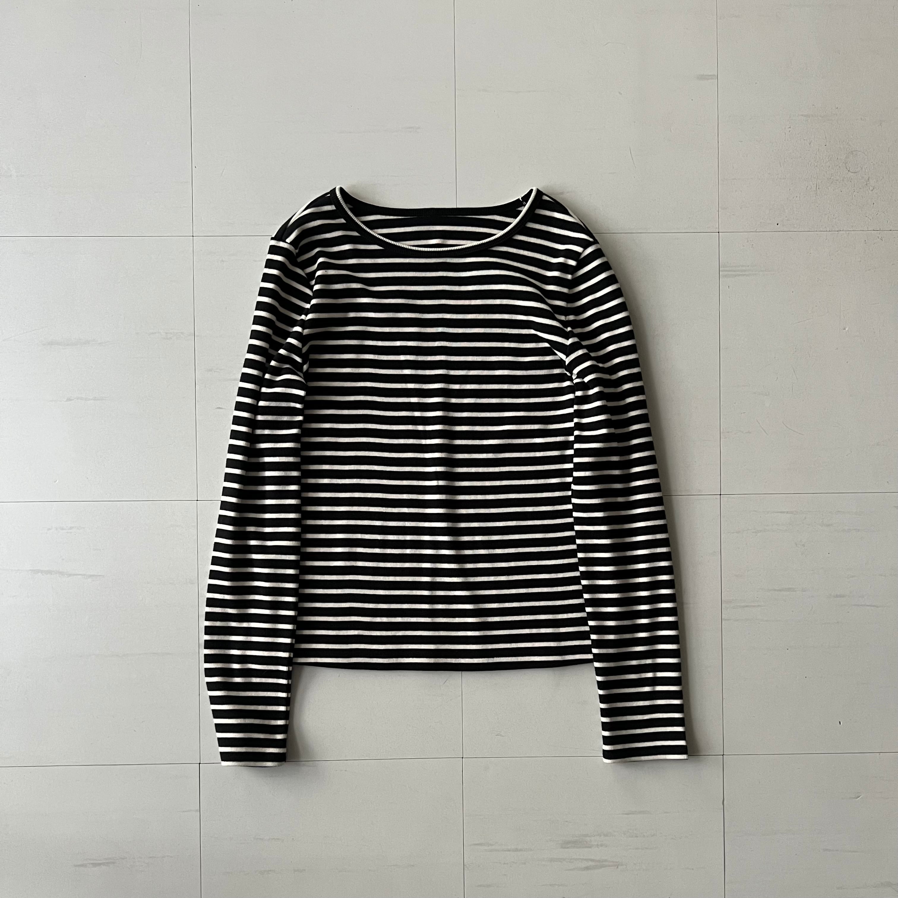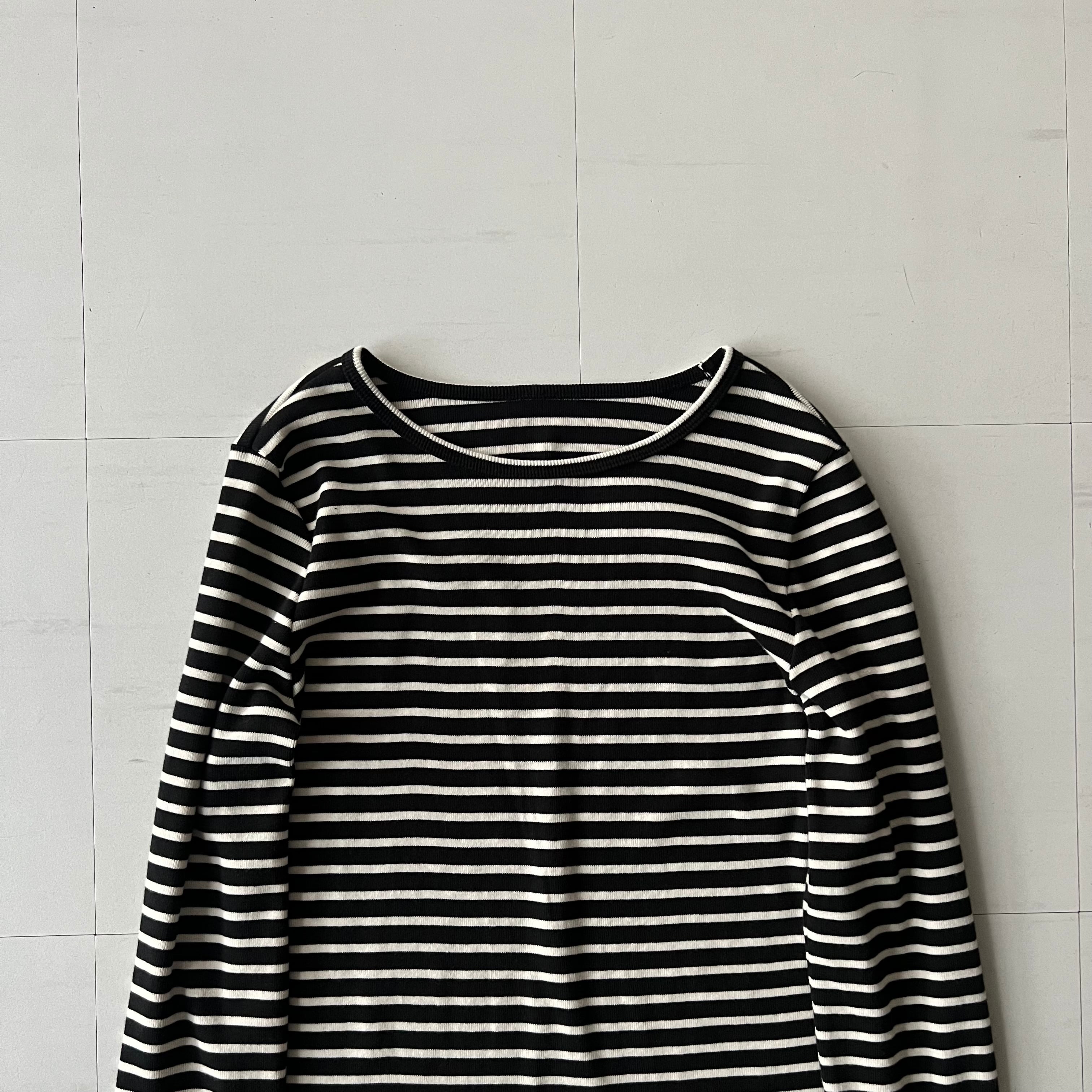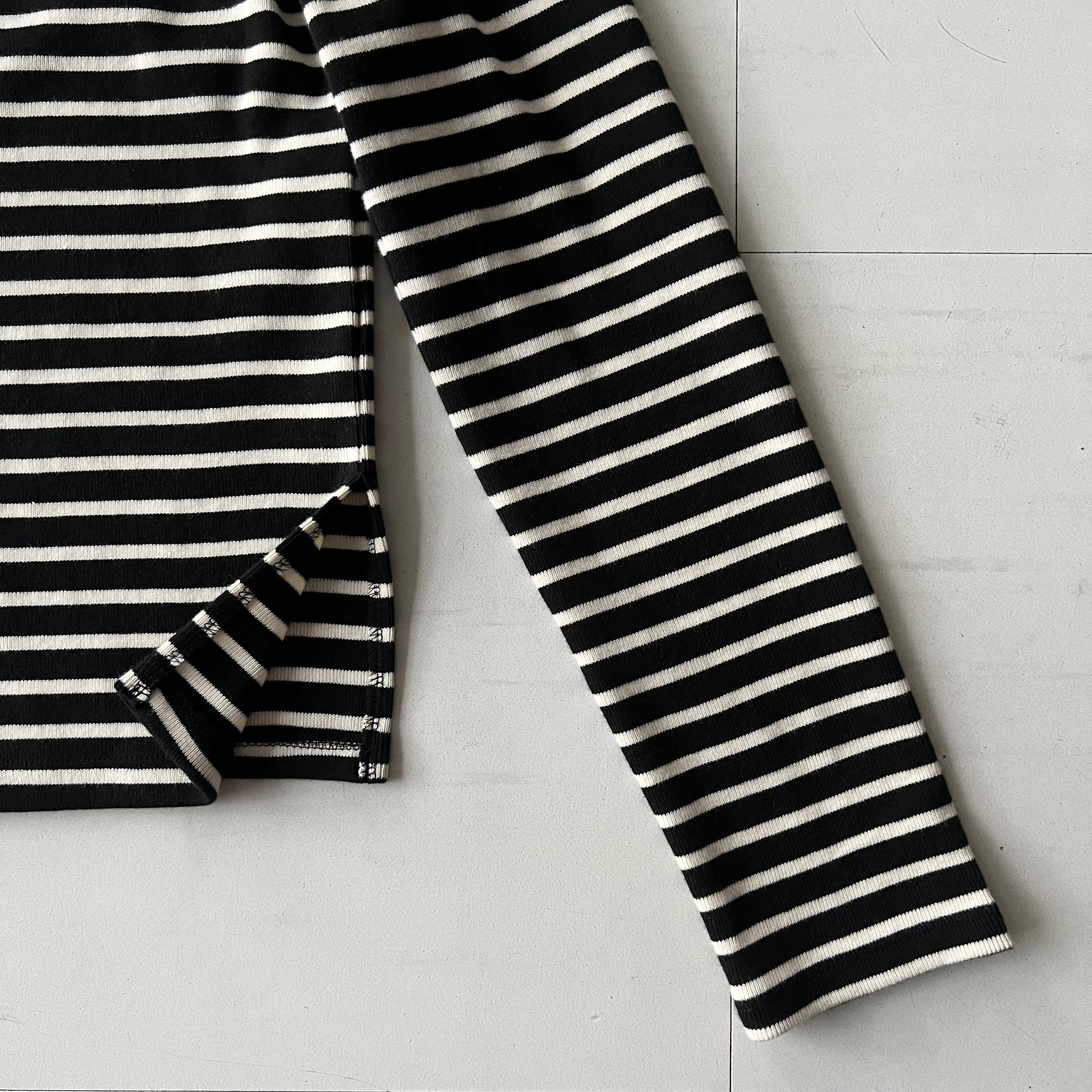 【k-134】 (BK×IV) ボーダー長袖リブカットソー