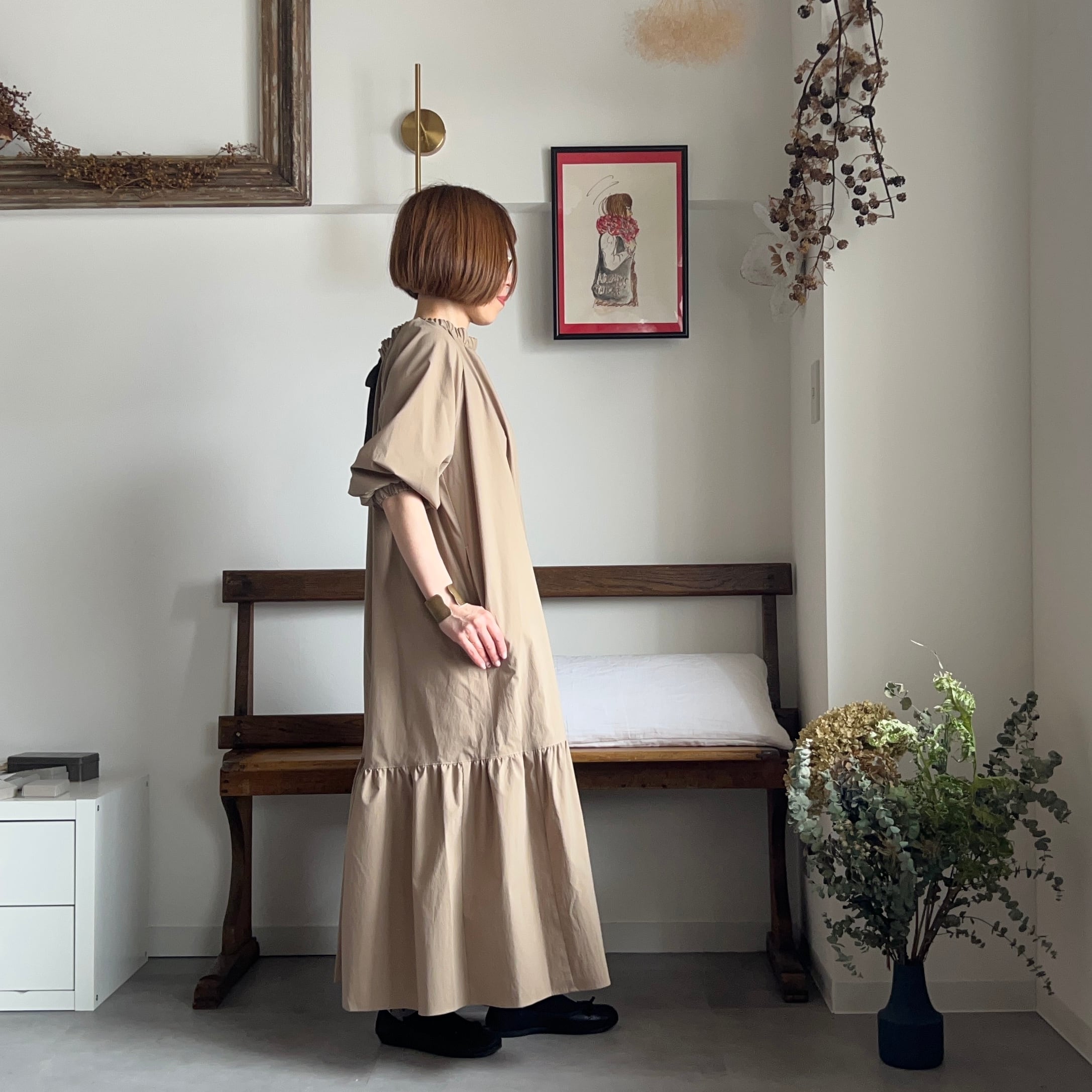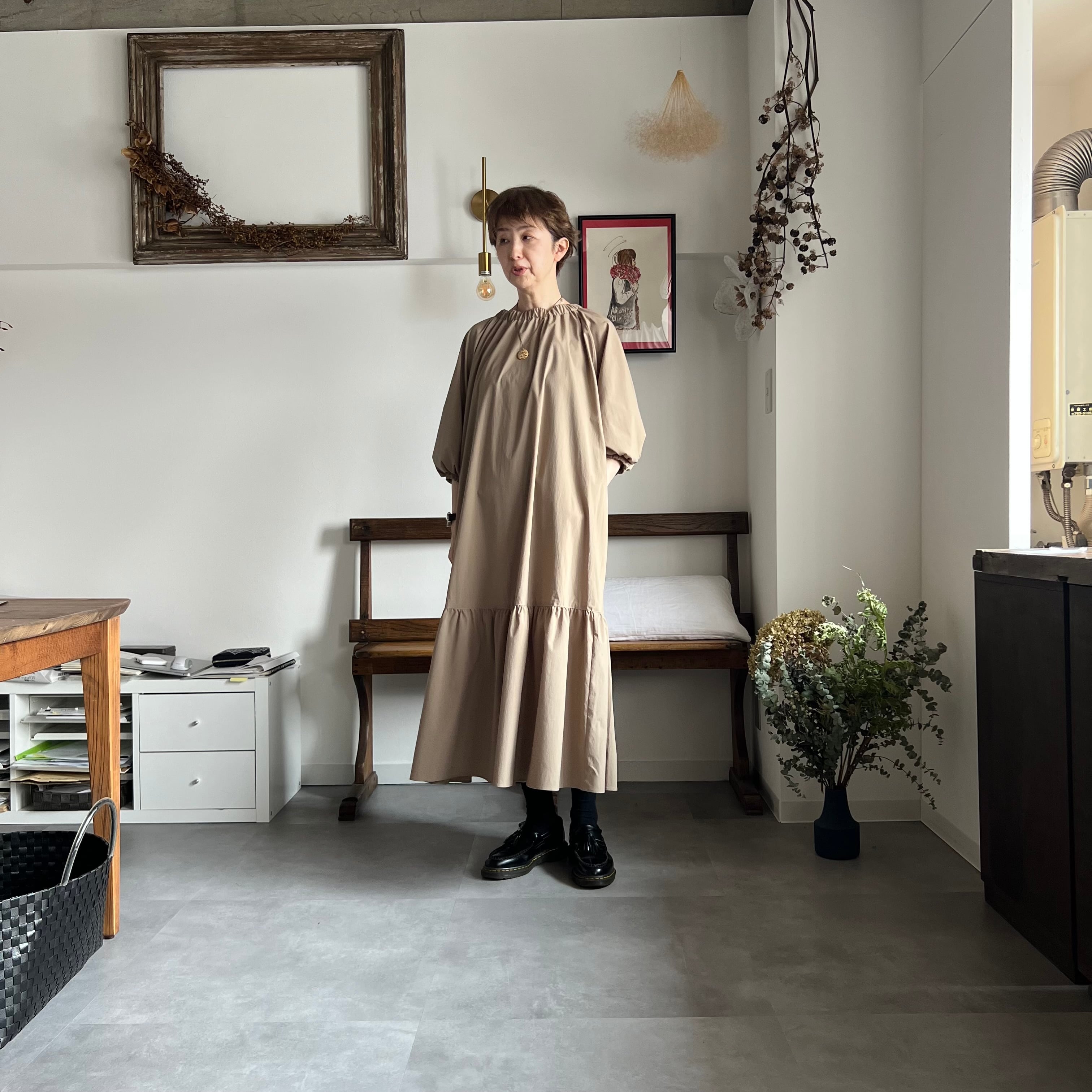 【k-119】ボリュームスリーブティアードOP(ベージュ)