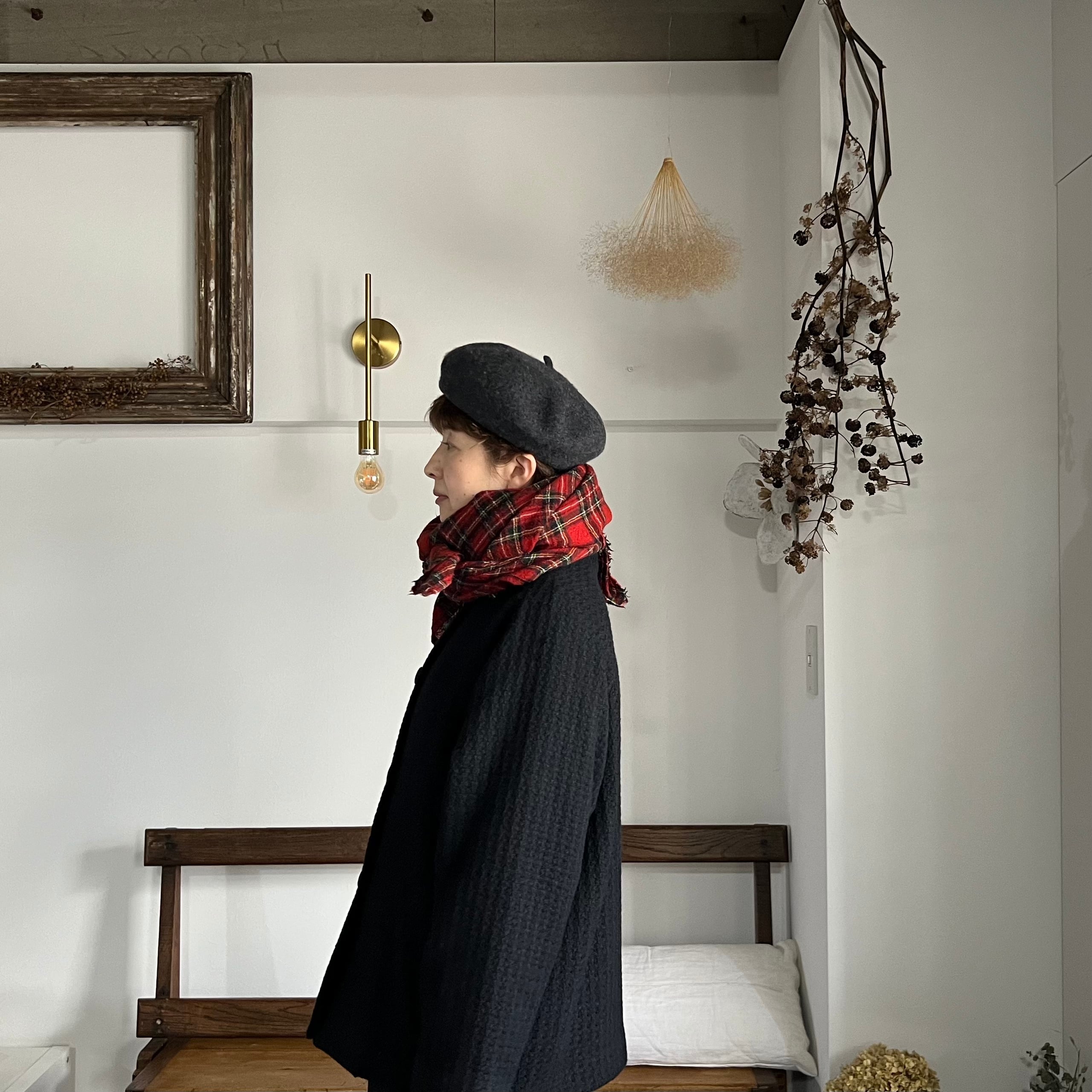 【k-114】(BASIC)ウールガーゼのストール(レッド系)
