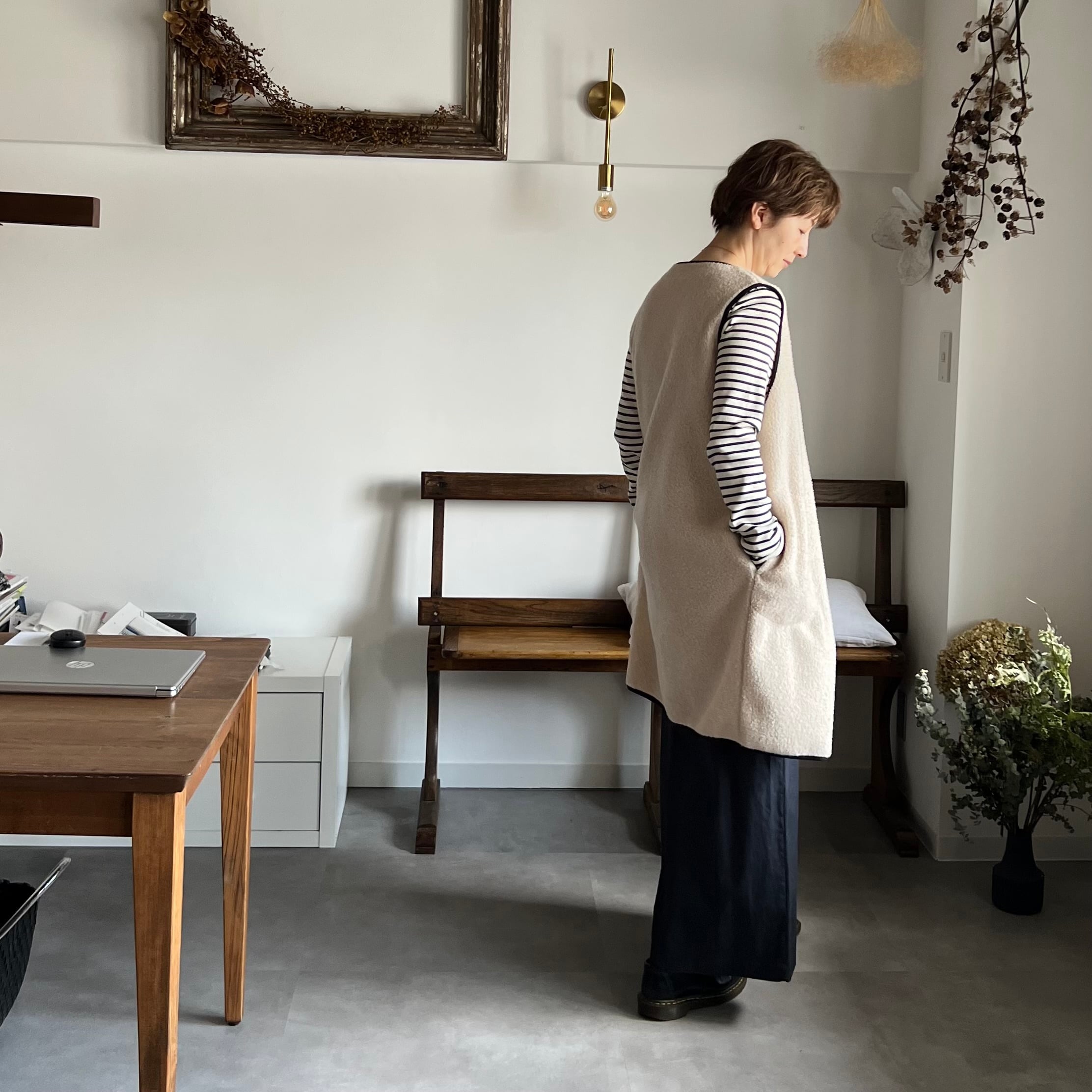 ボアのロングベストになります。