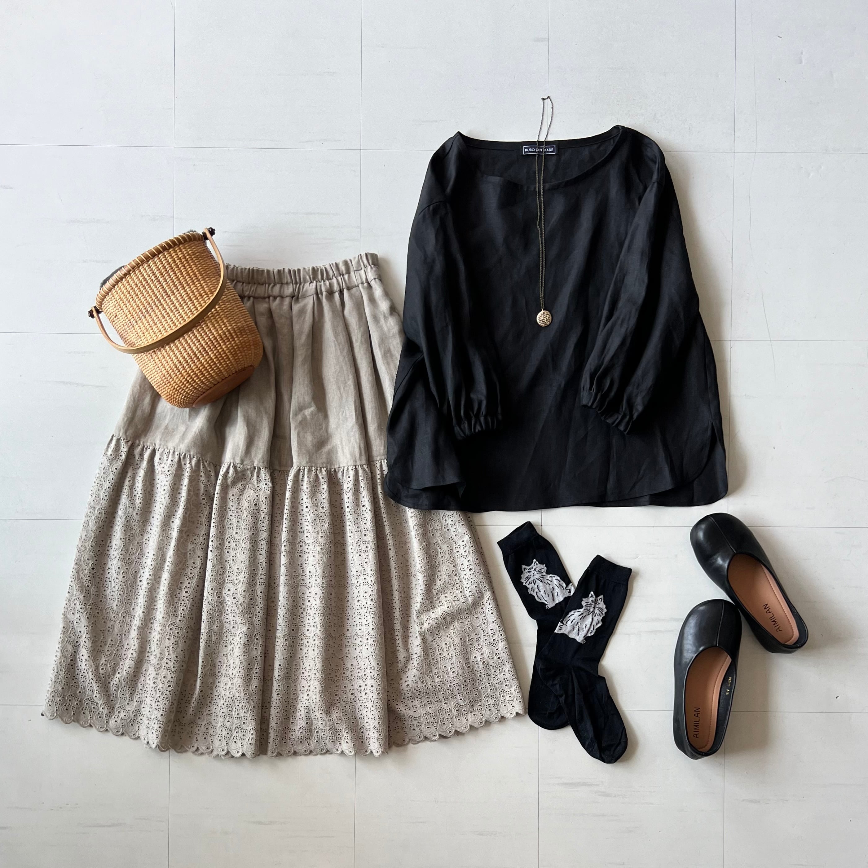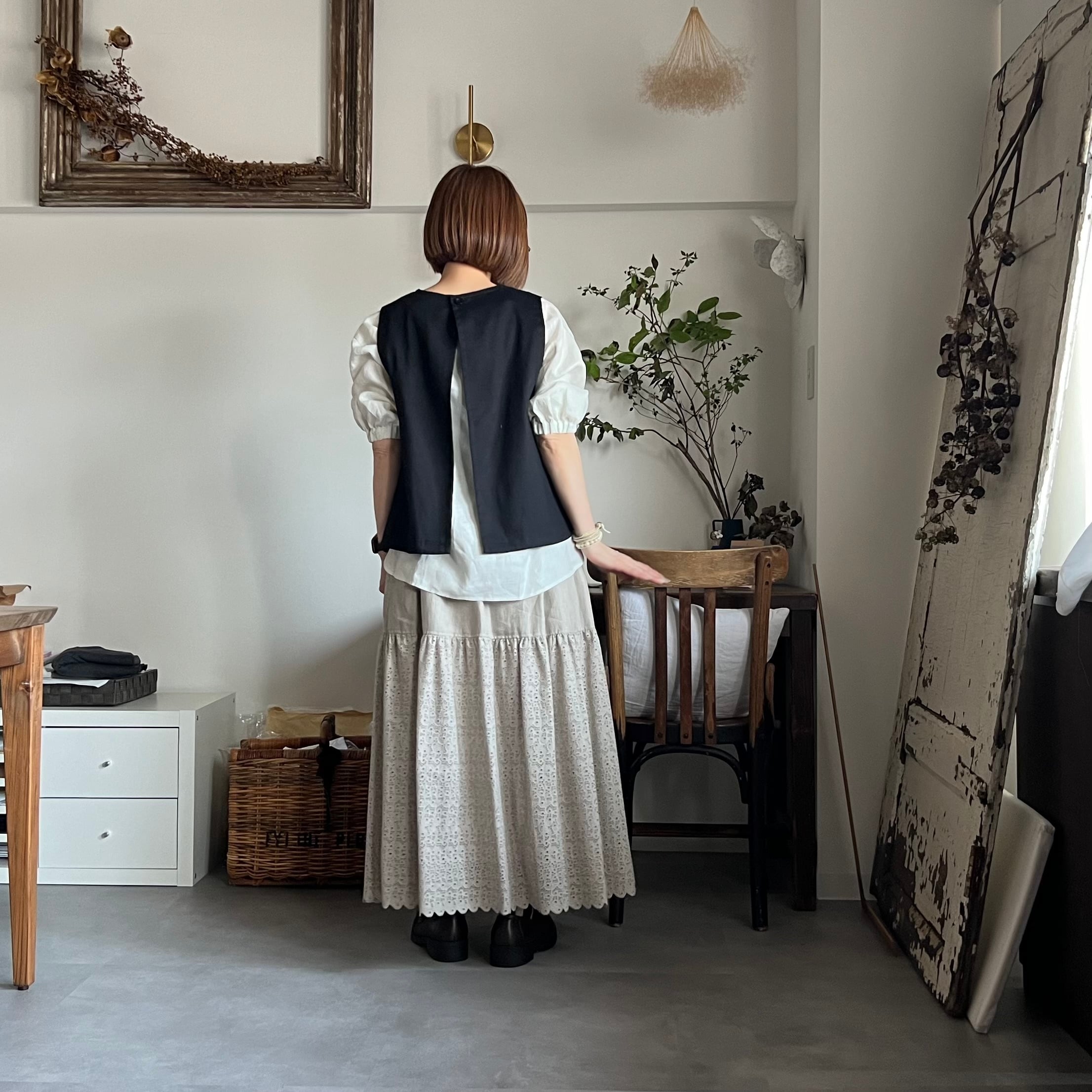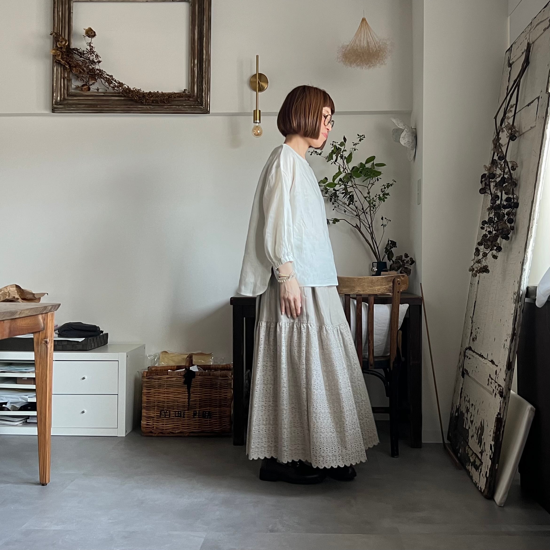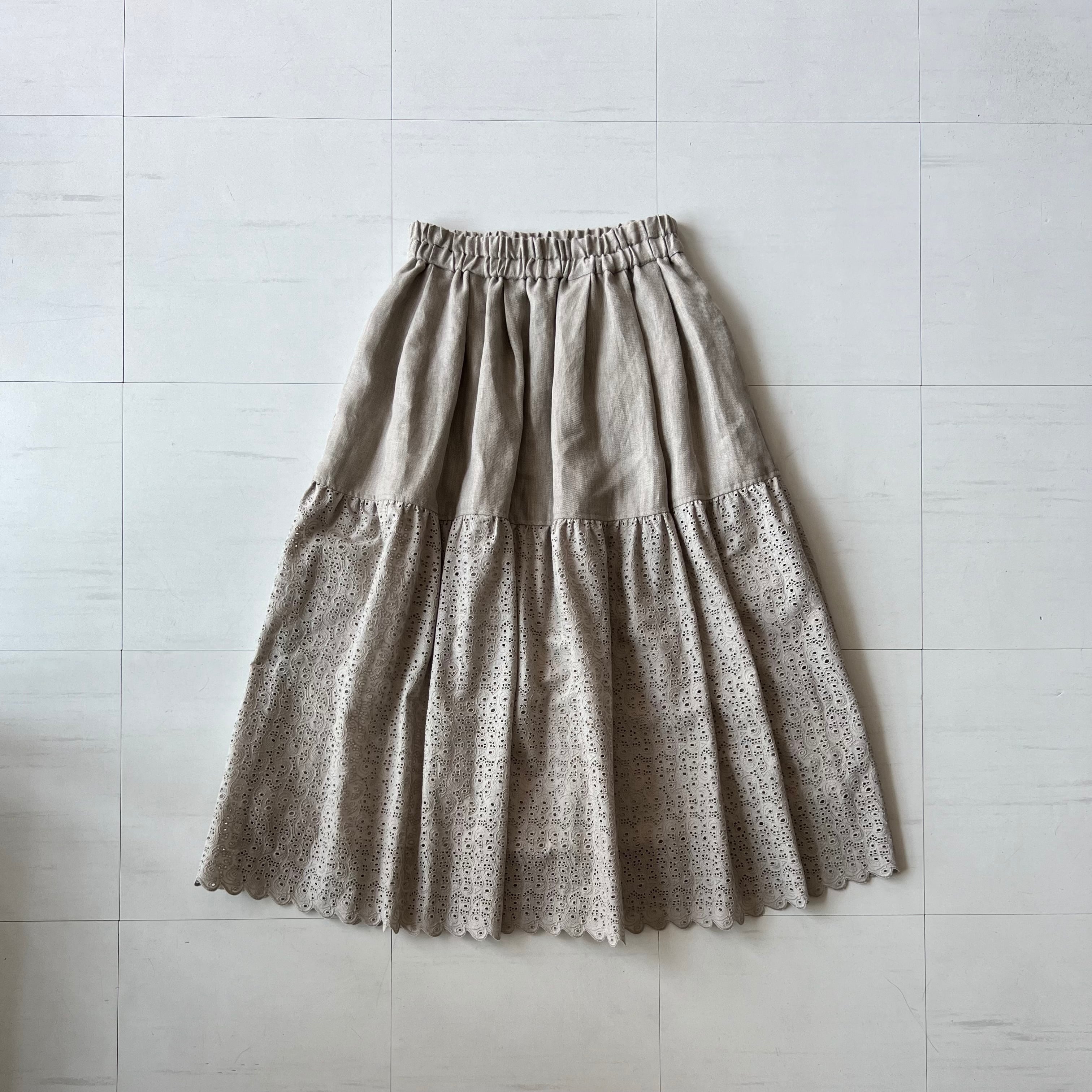 【k-140】(BASIC)刺繍のティアードスカート(ベージュ)