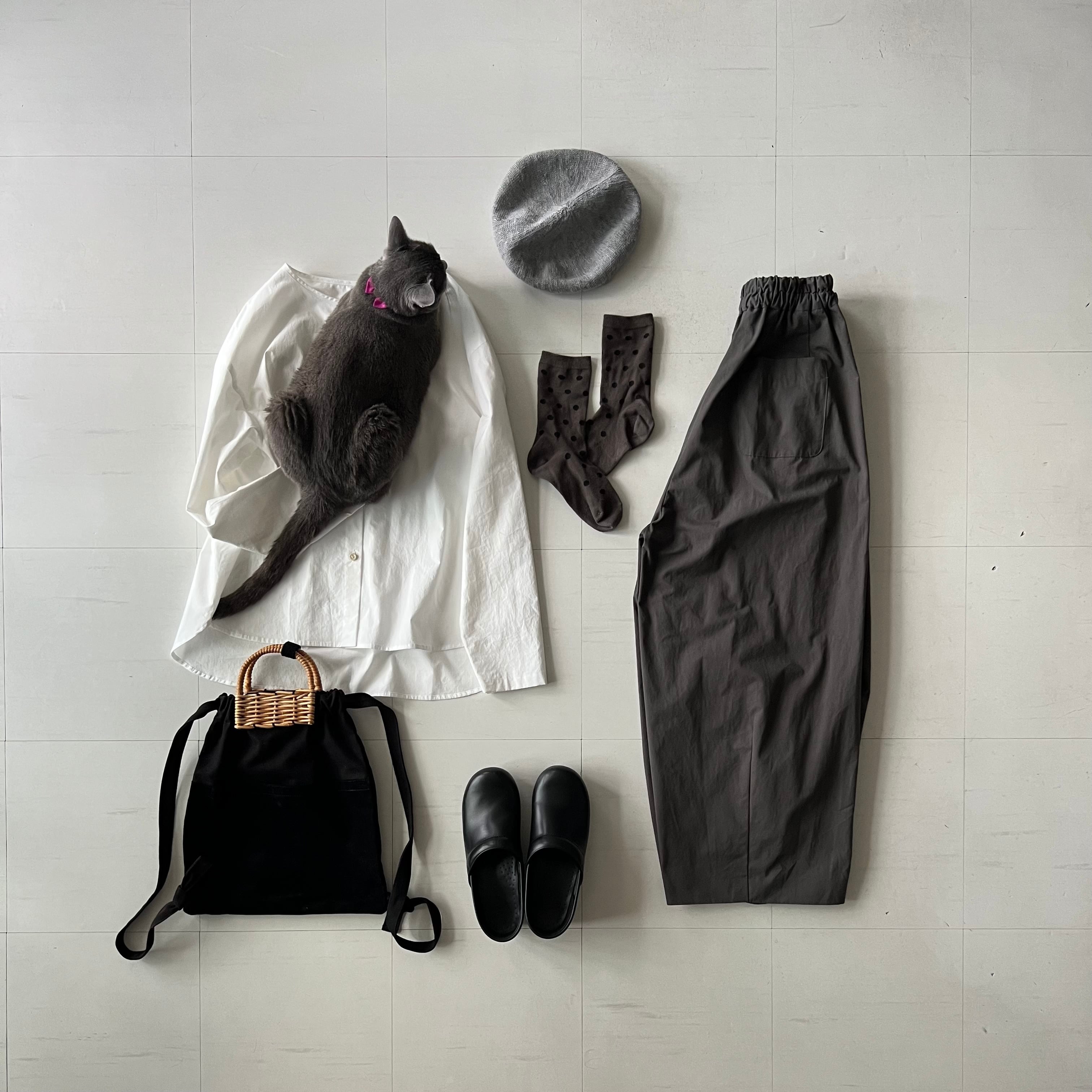 ブラウスにスウェット、