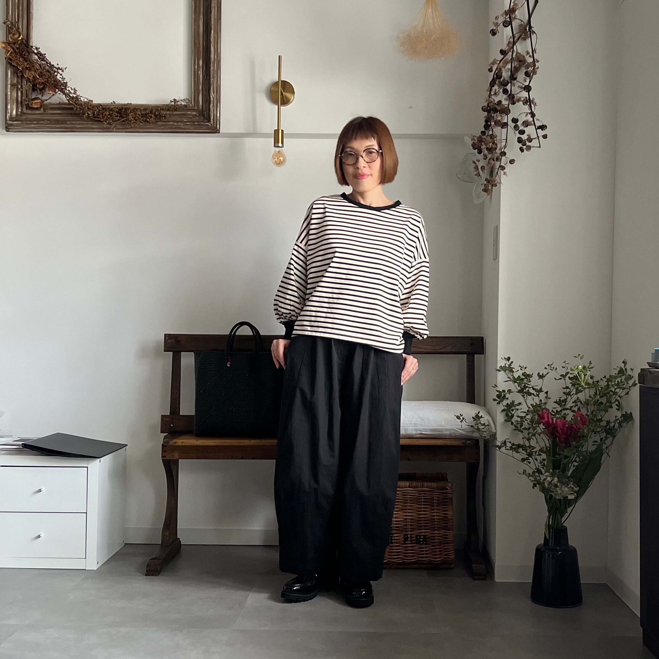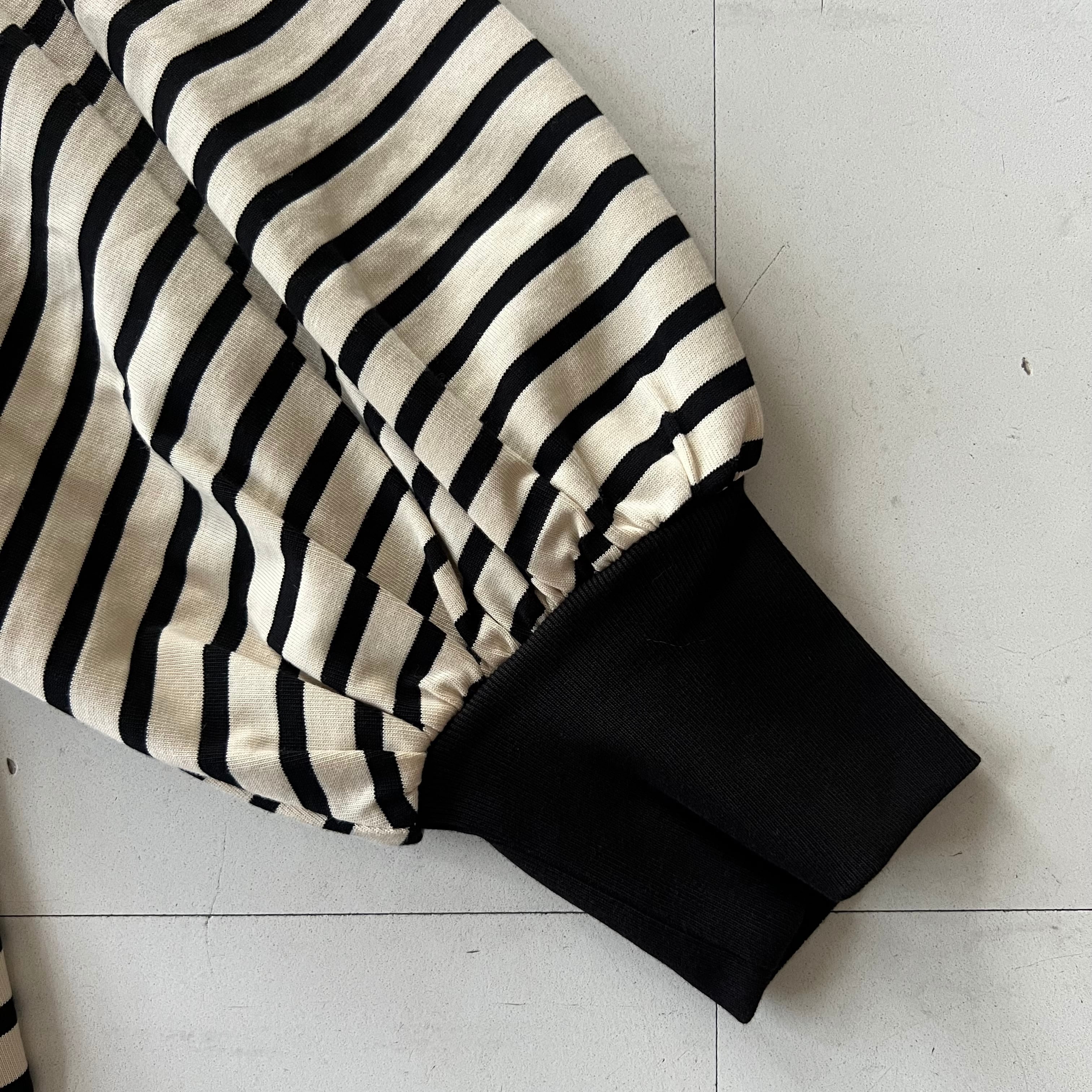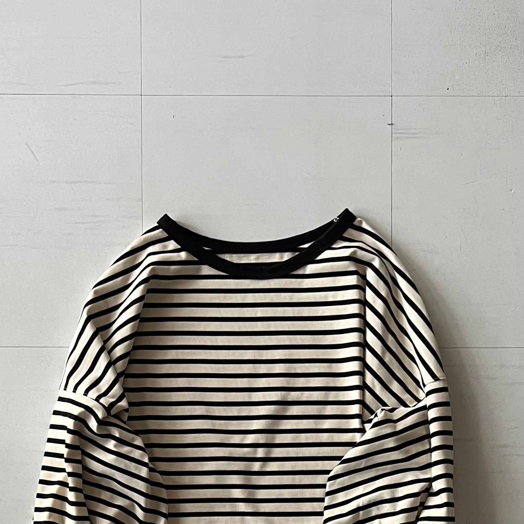 【k-198】 バルーン袖カットソーチュニック(IV×BKのボーダー)