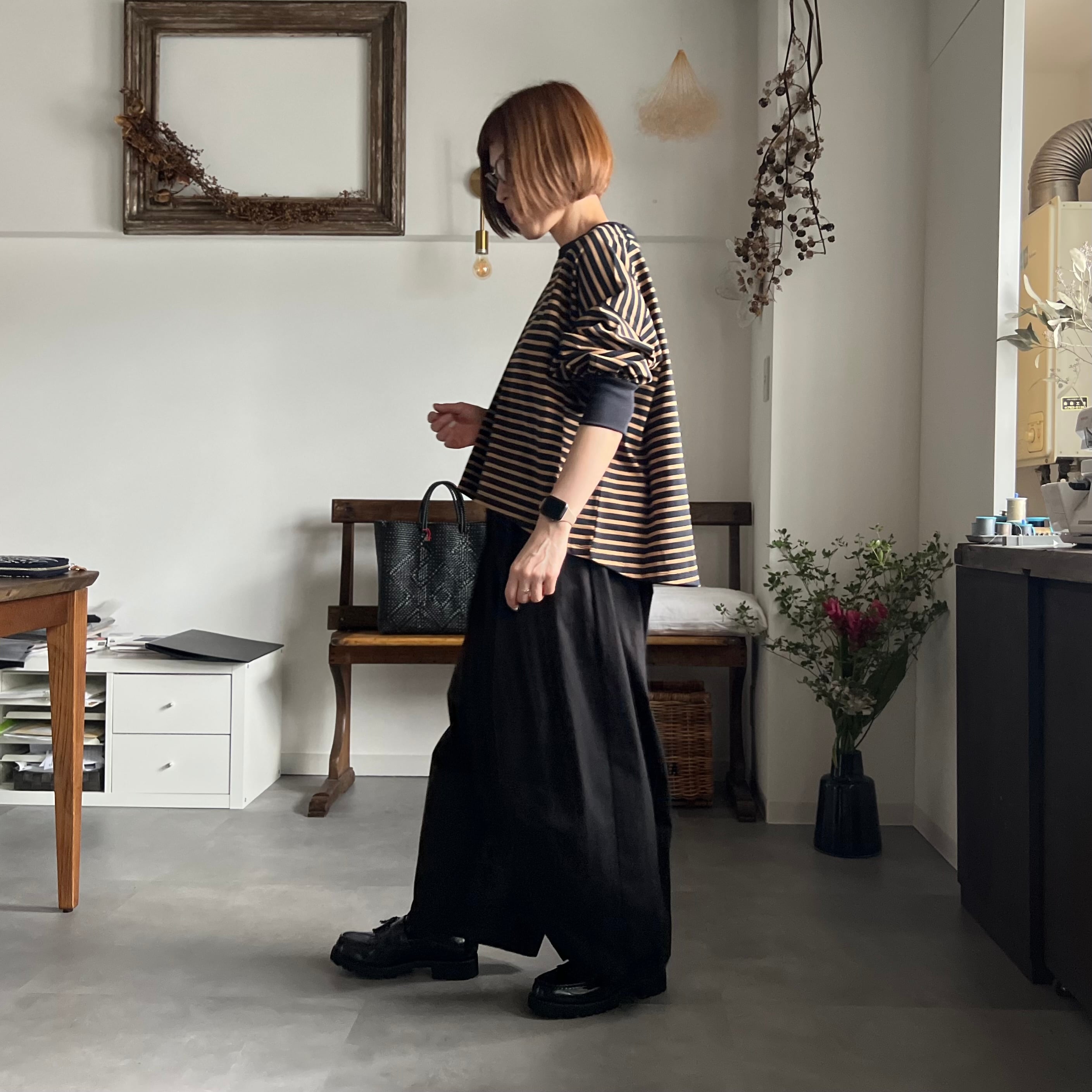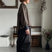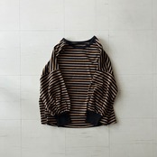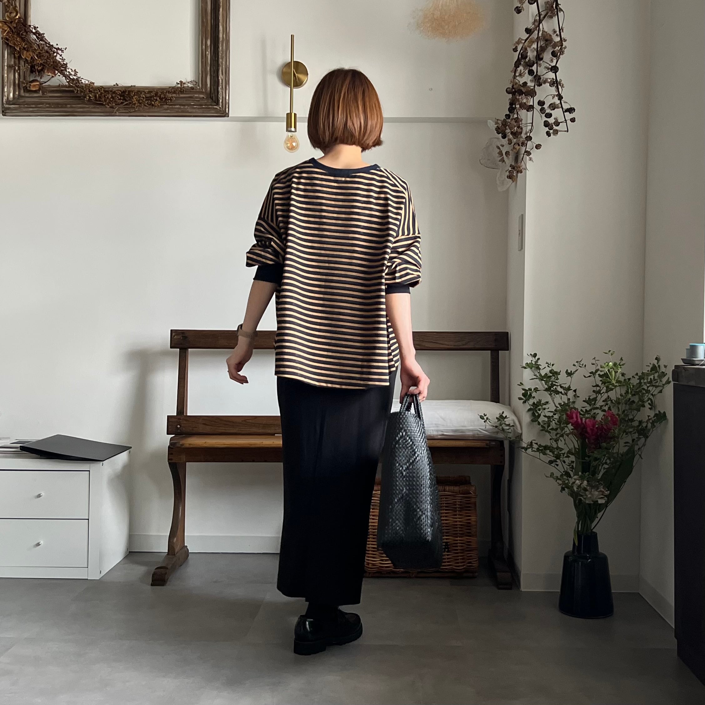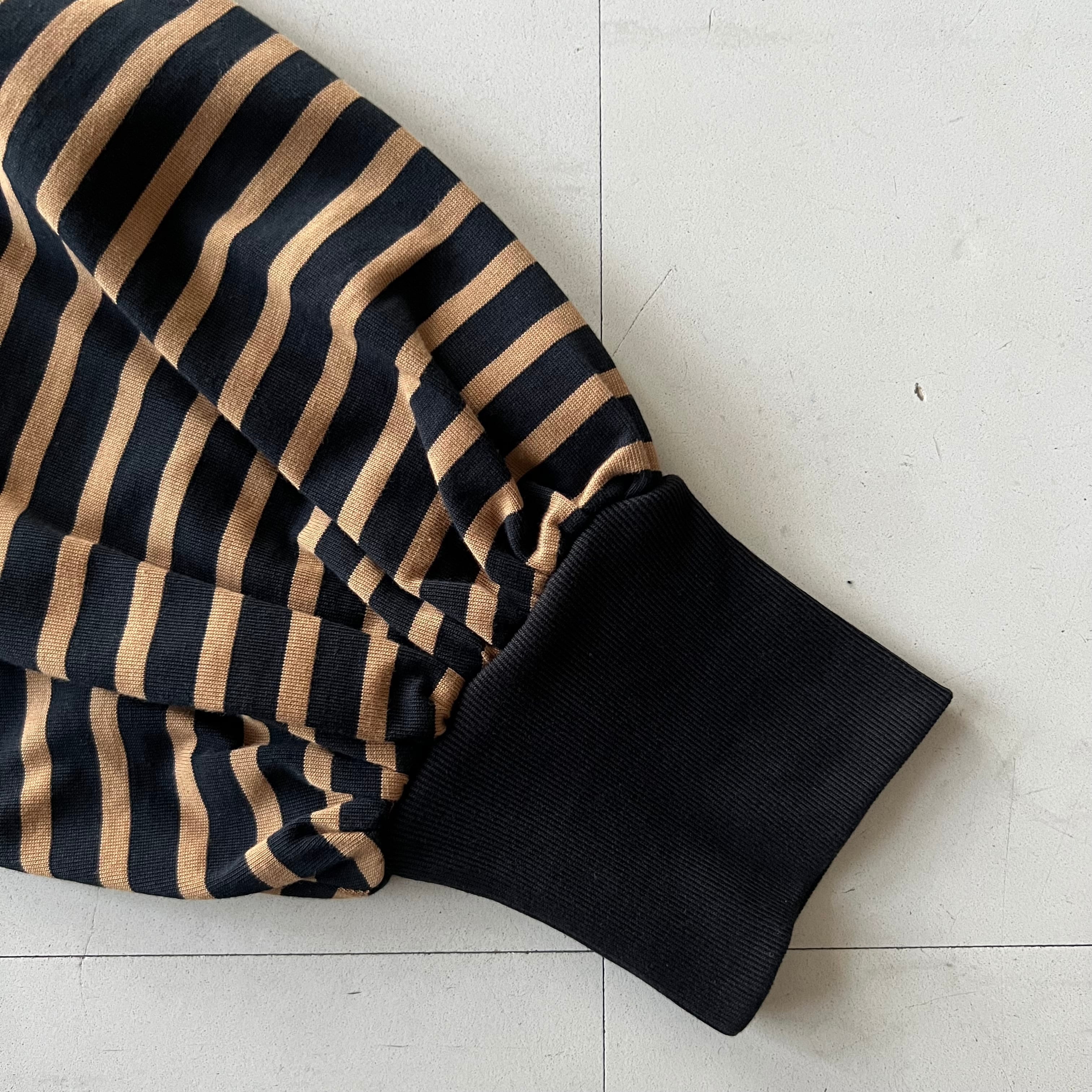 【k-198】 バルーン袖カットソーチュニック(NV×キャメルのボーダー)