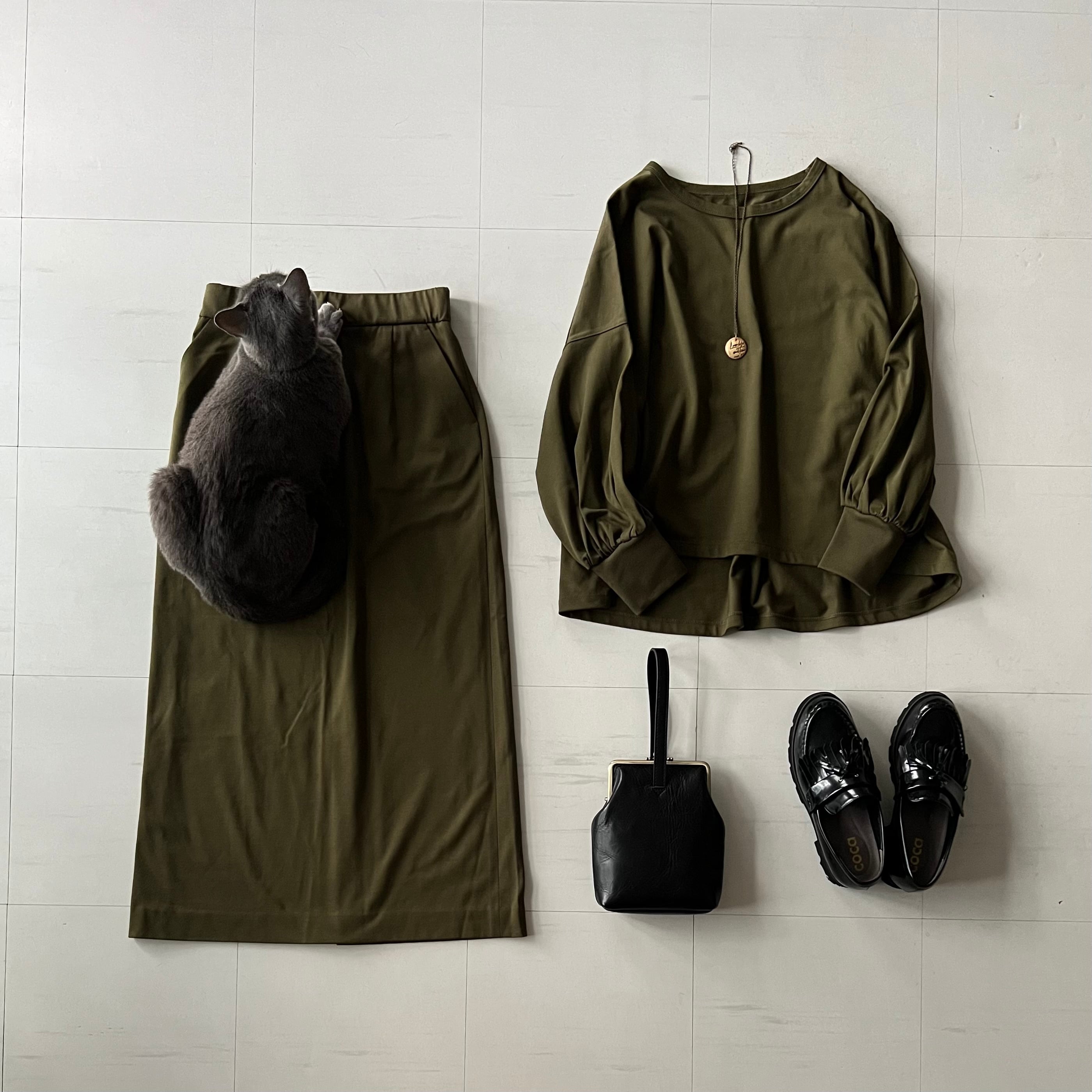 【k-196】ロングタイトスカート(カーキ)