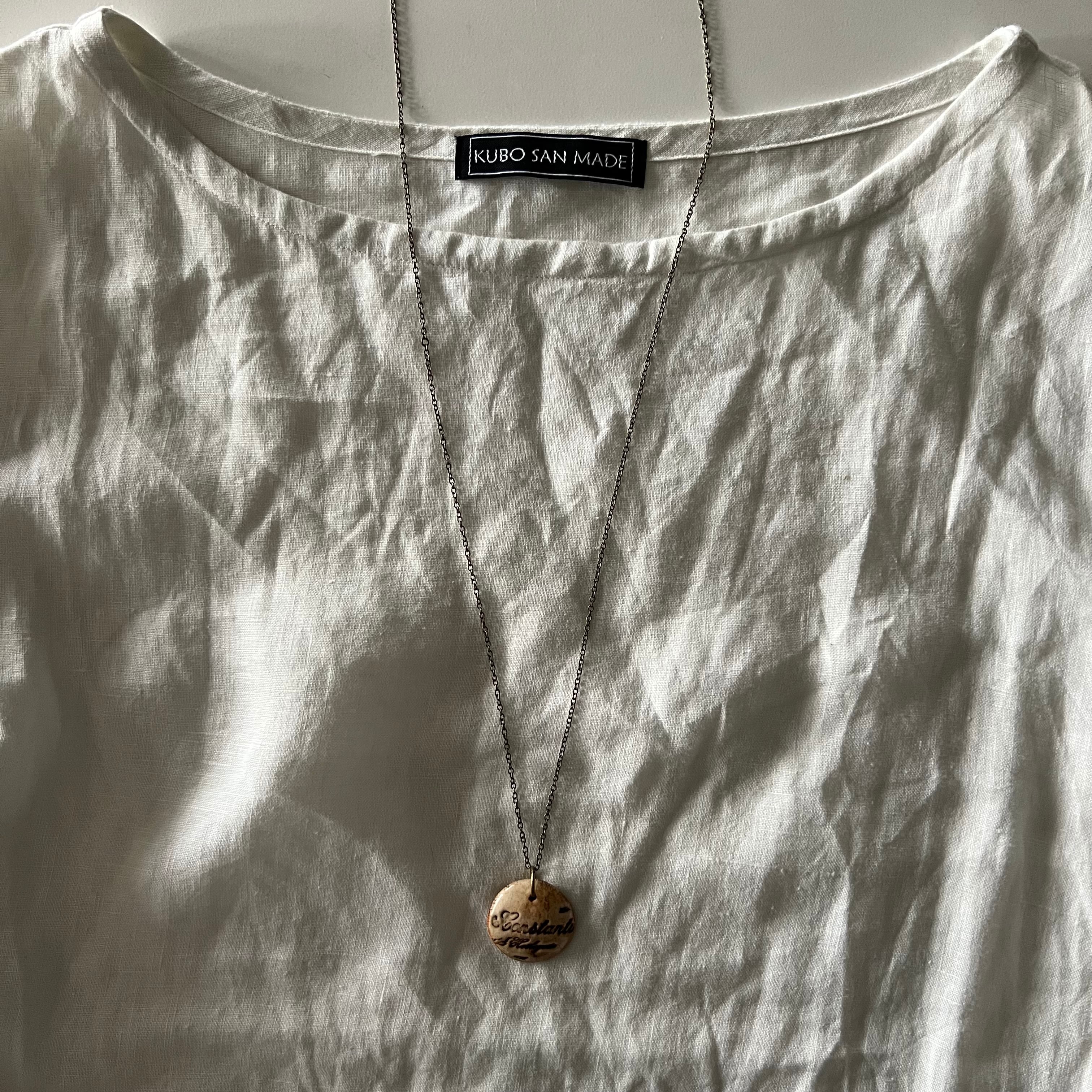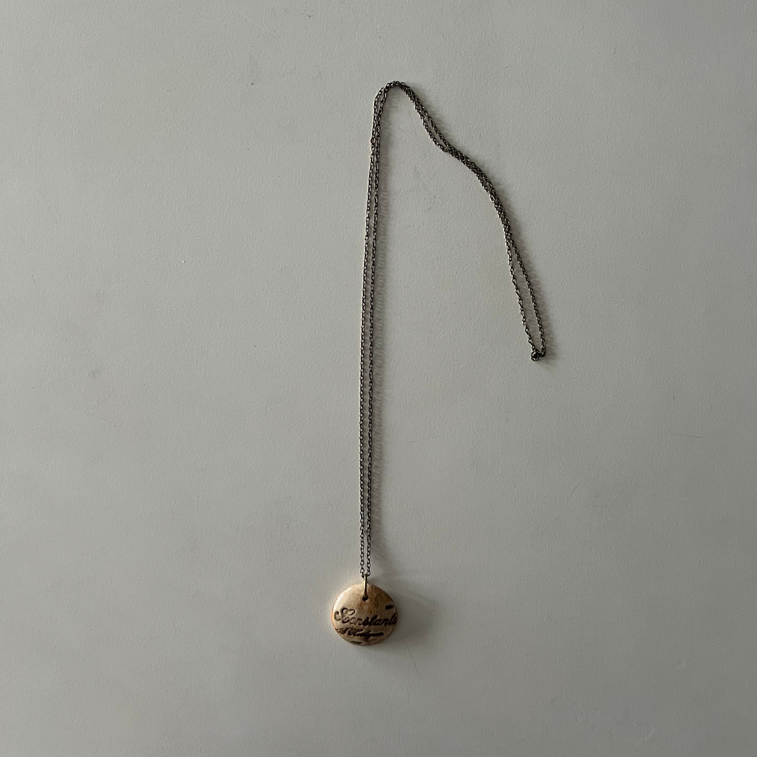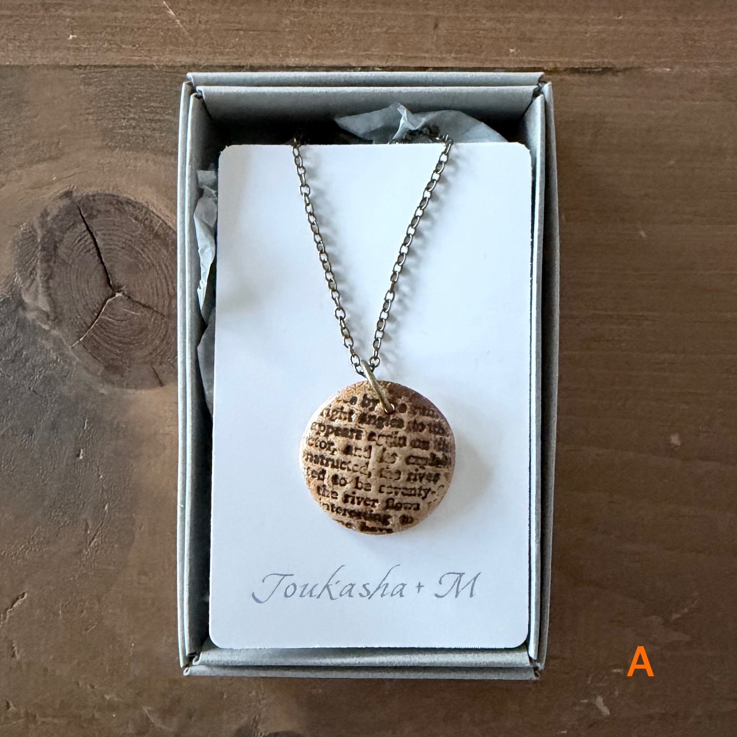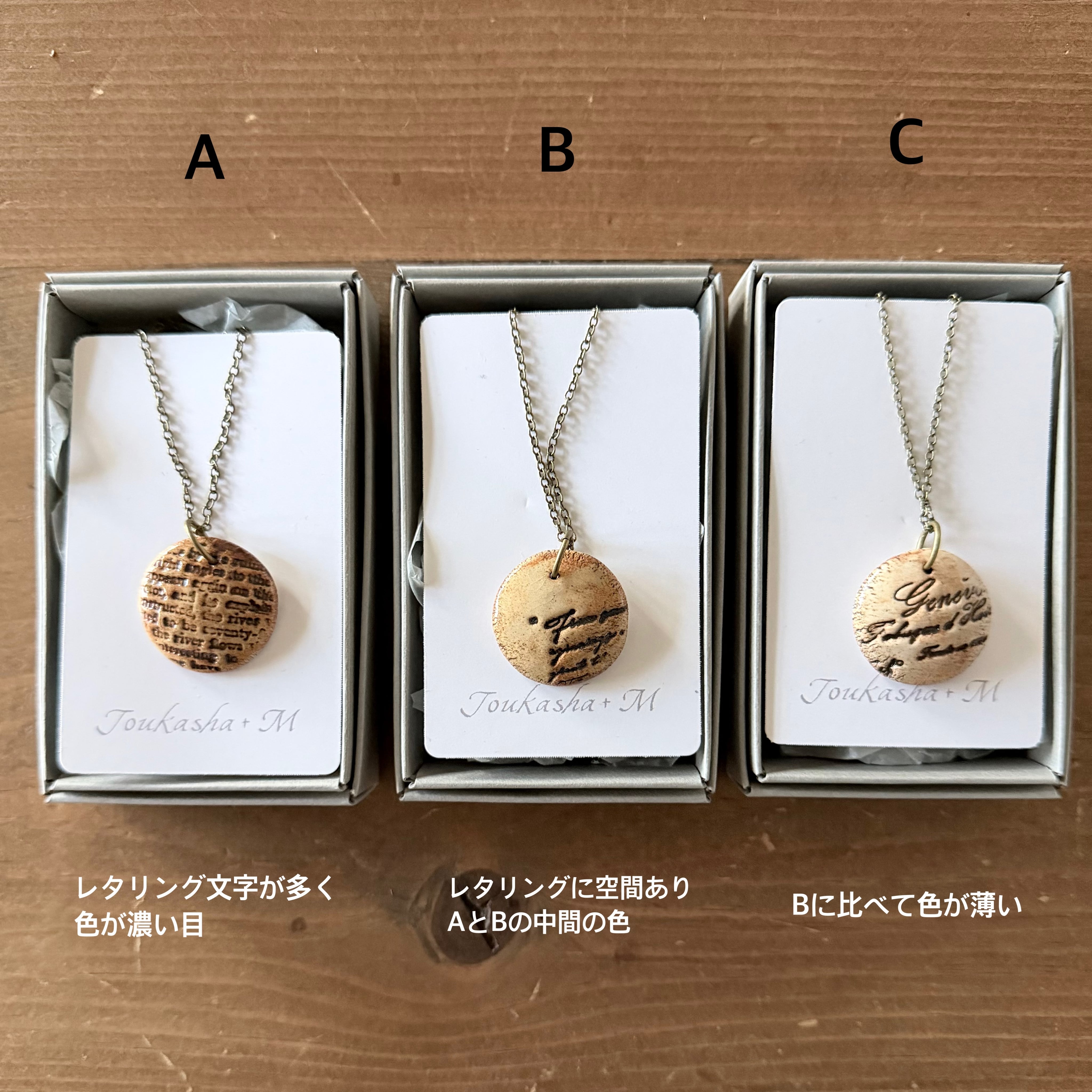 陶器で出来たレタリングの様な刻印のついたデザインの