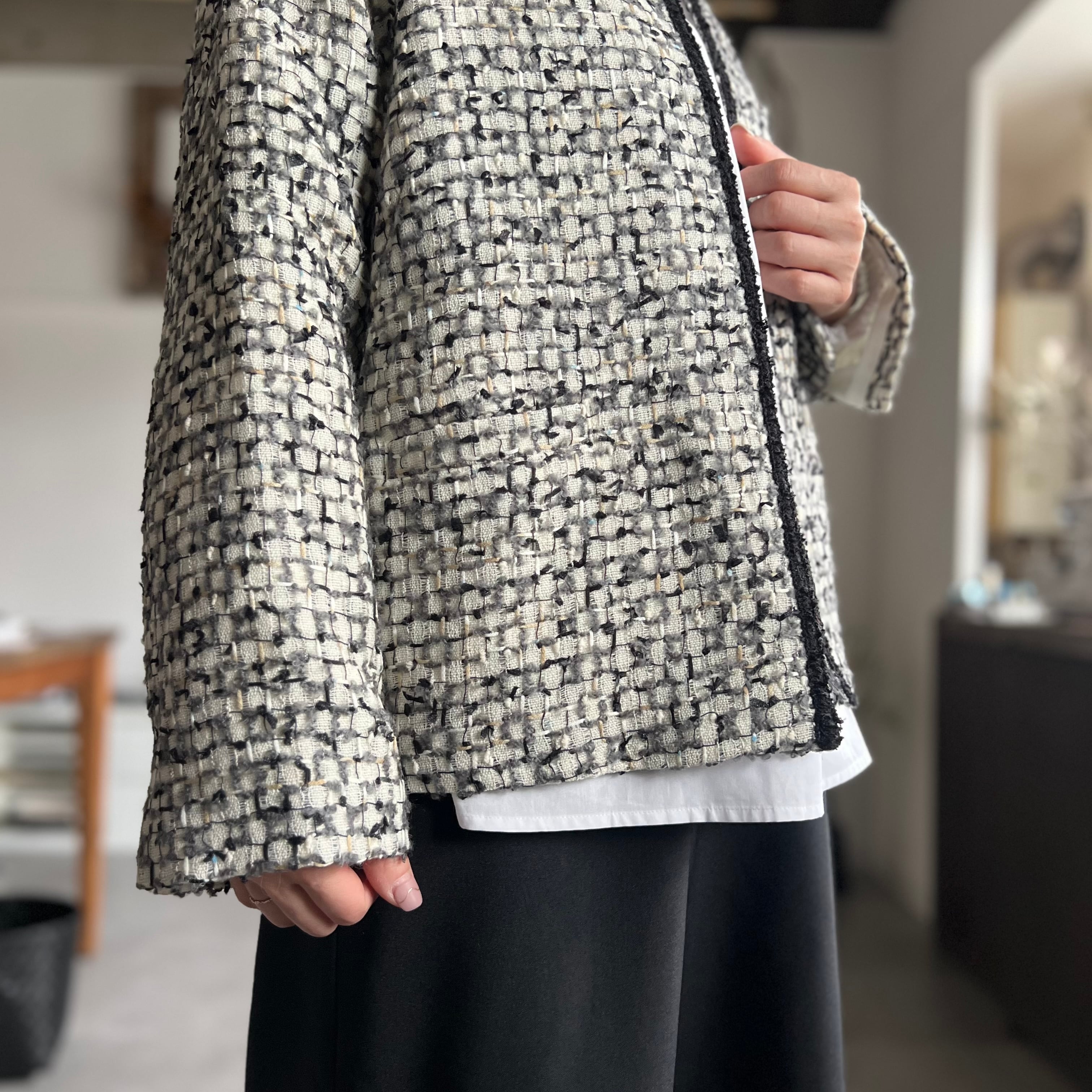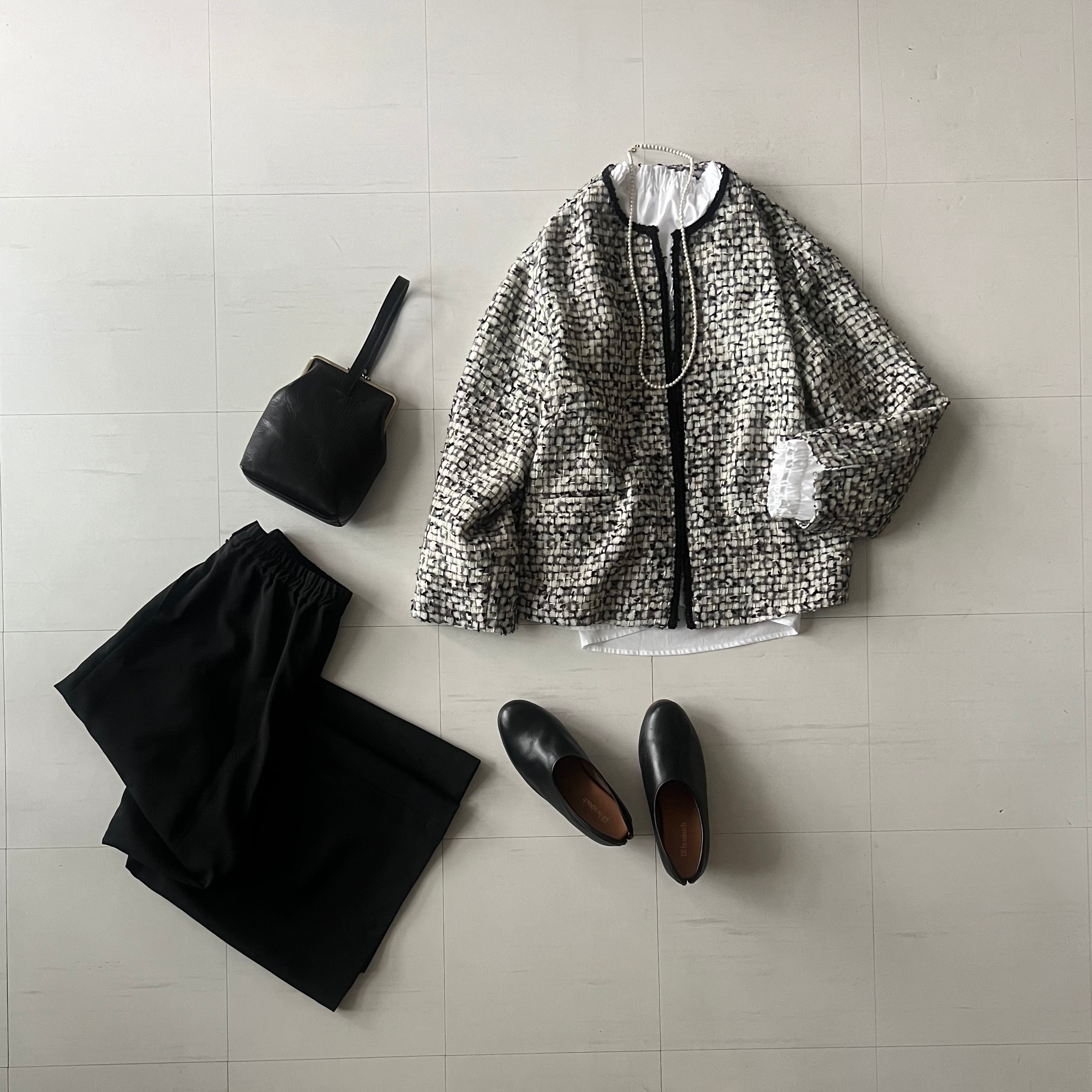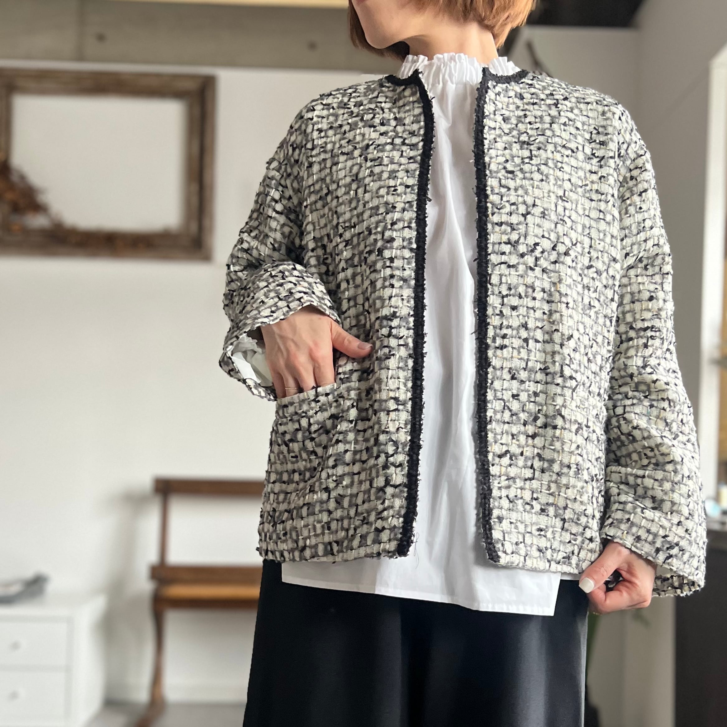 カーディガンとジャケットの中間の様に着て頂きたい。