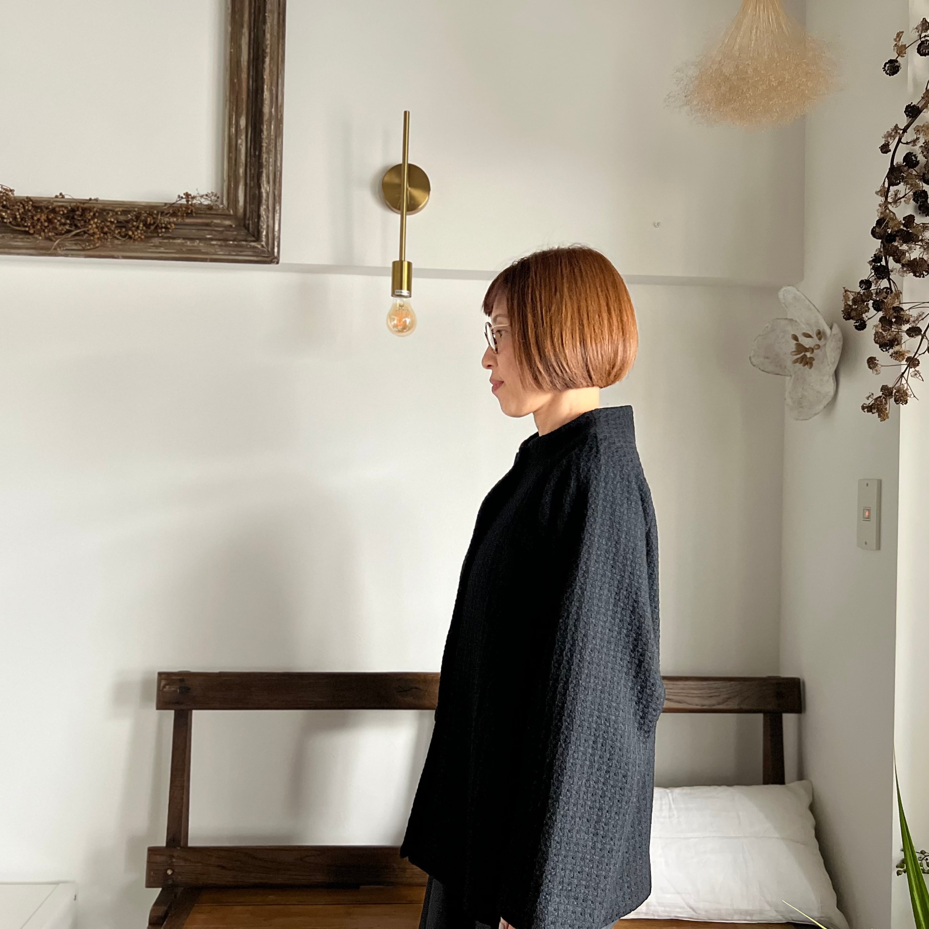 凹凸感のあるローピングのような生地感が雰囲気のある表情です。