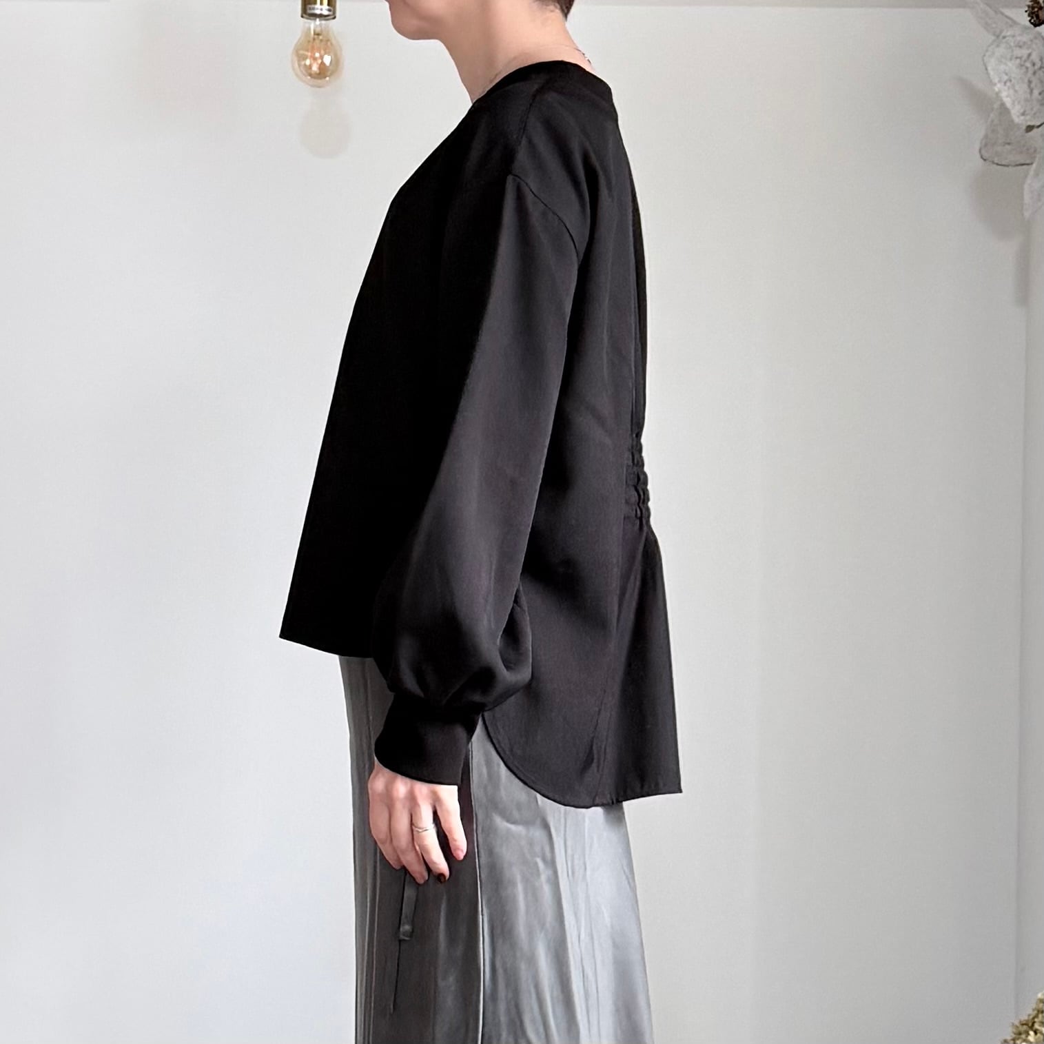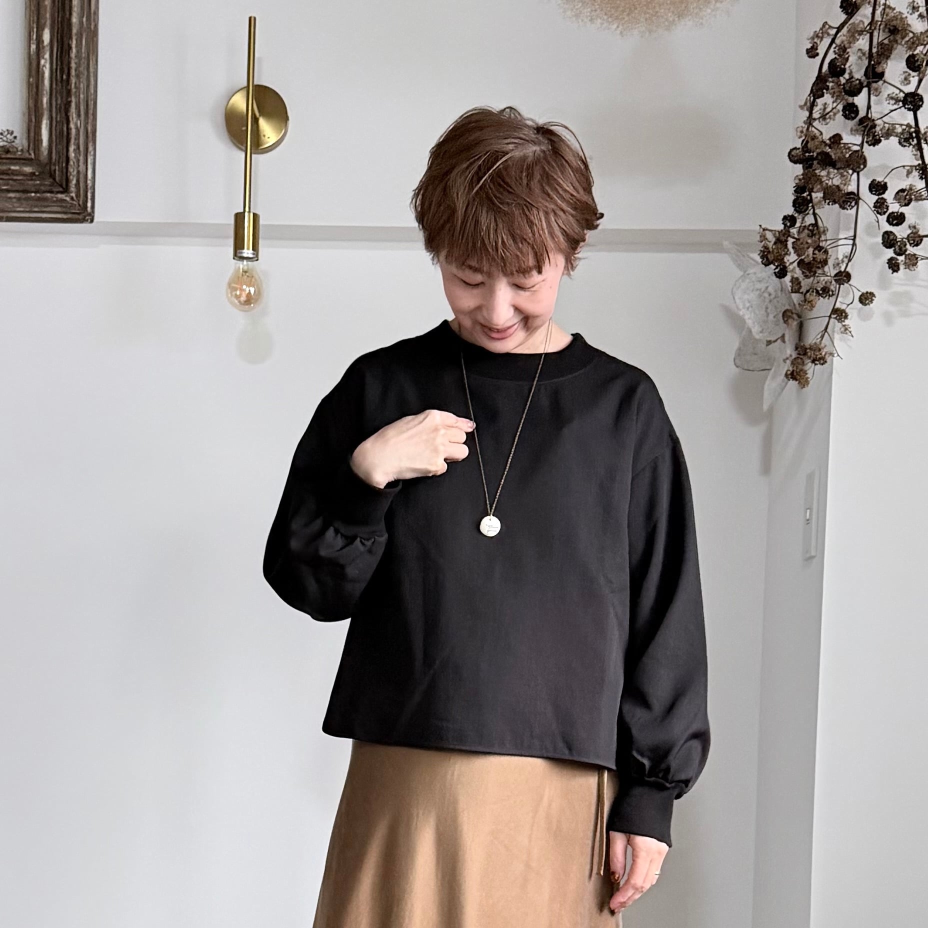 襟ぐりと袖口にリブの切り替えをつけたチュニックです。