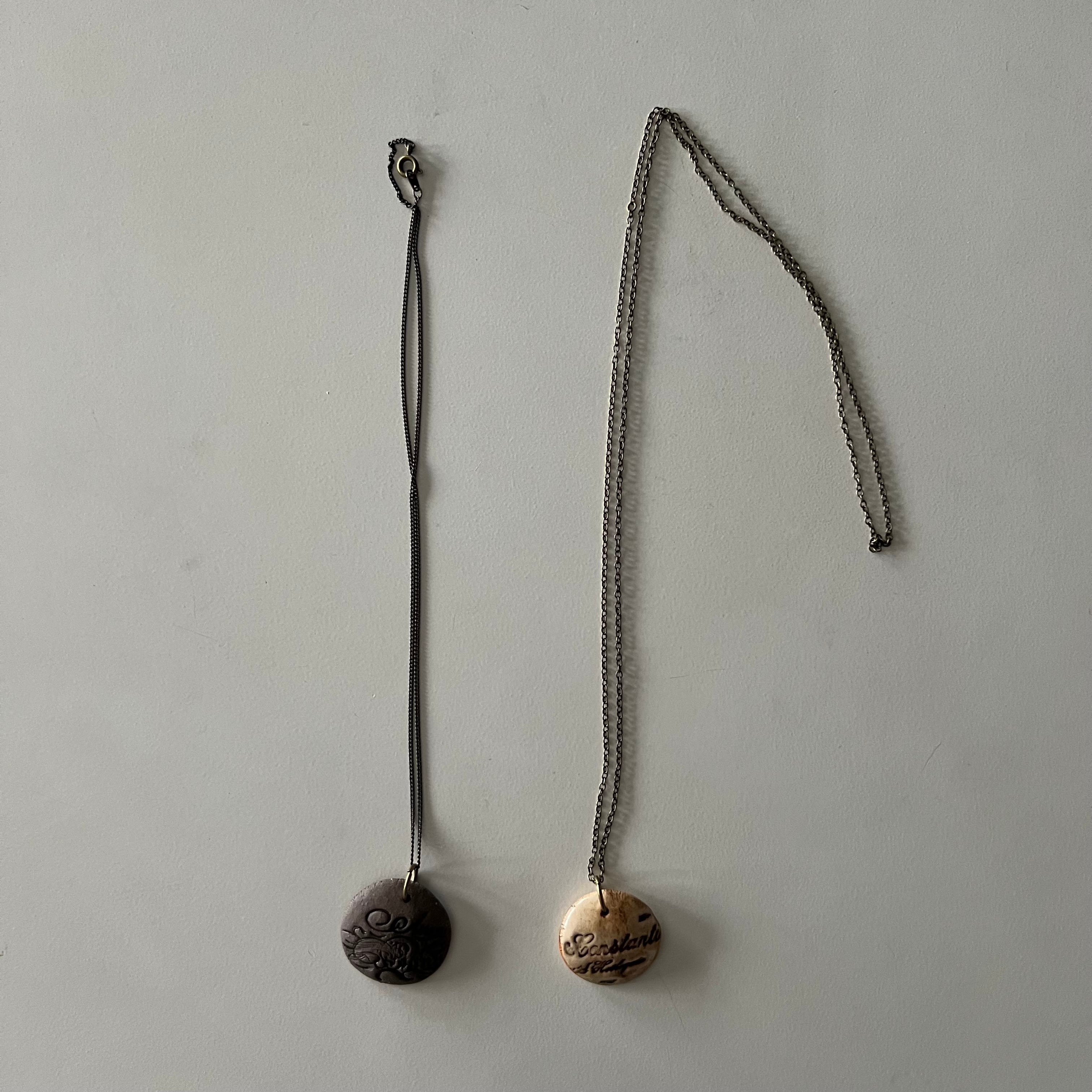 陶器で出来たレタリングの様な刻印のついたデザインの