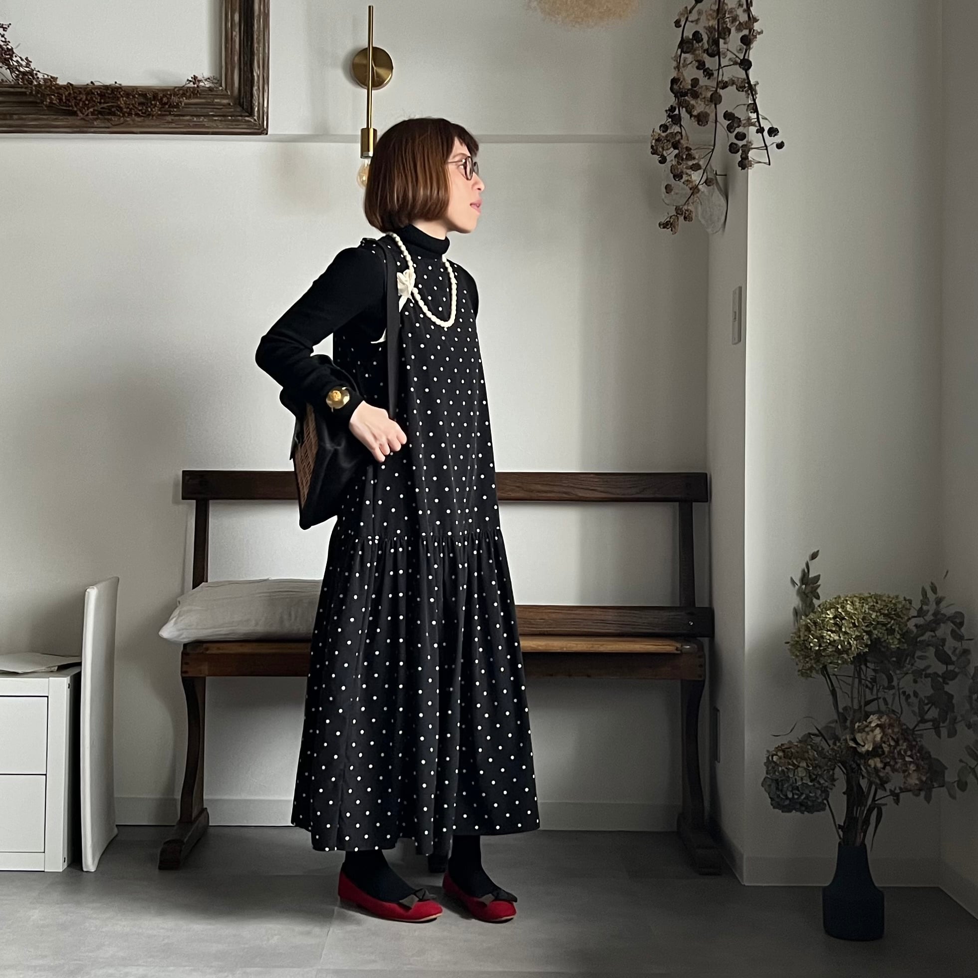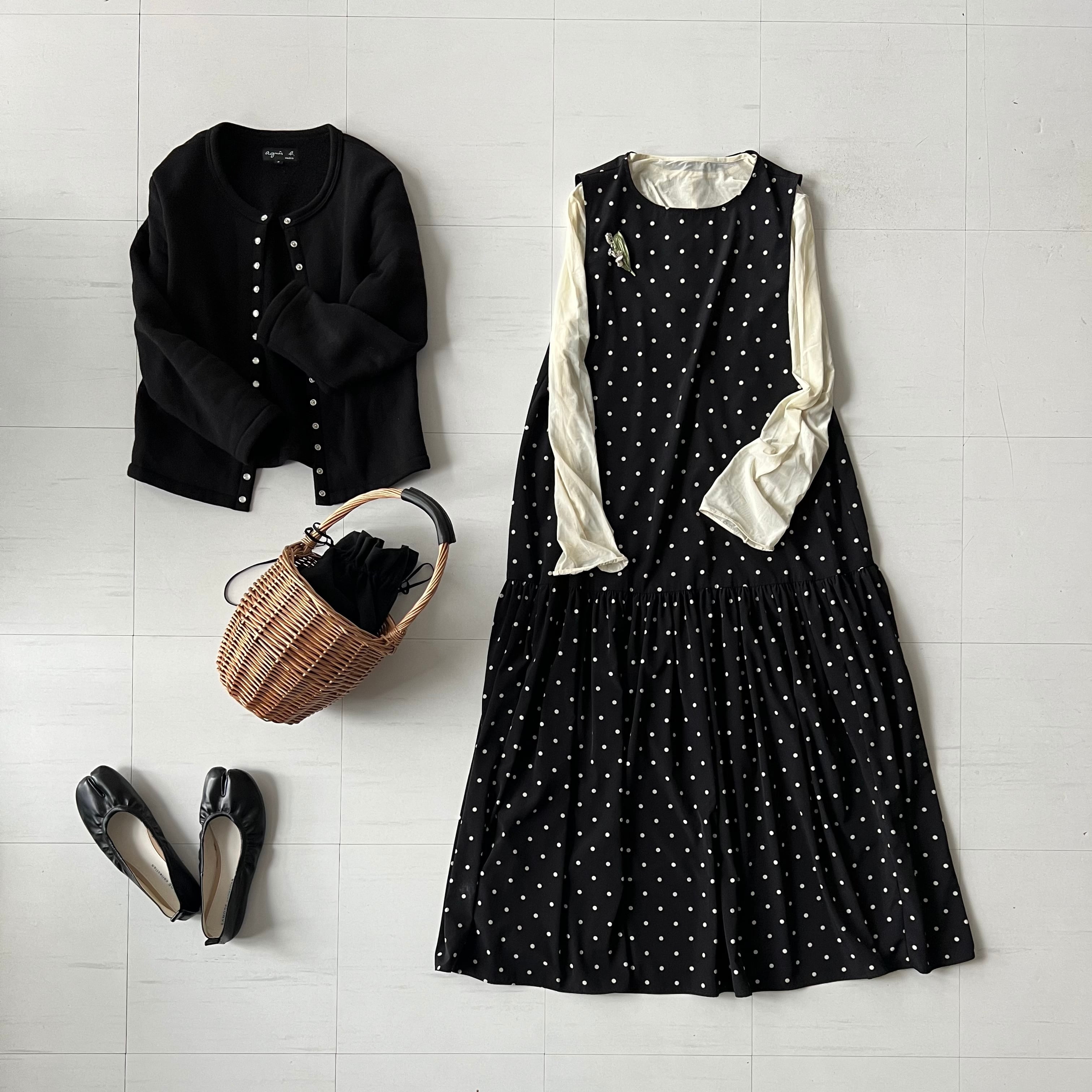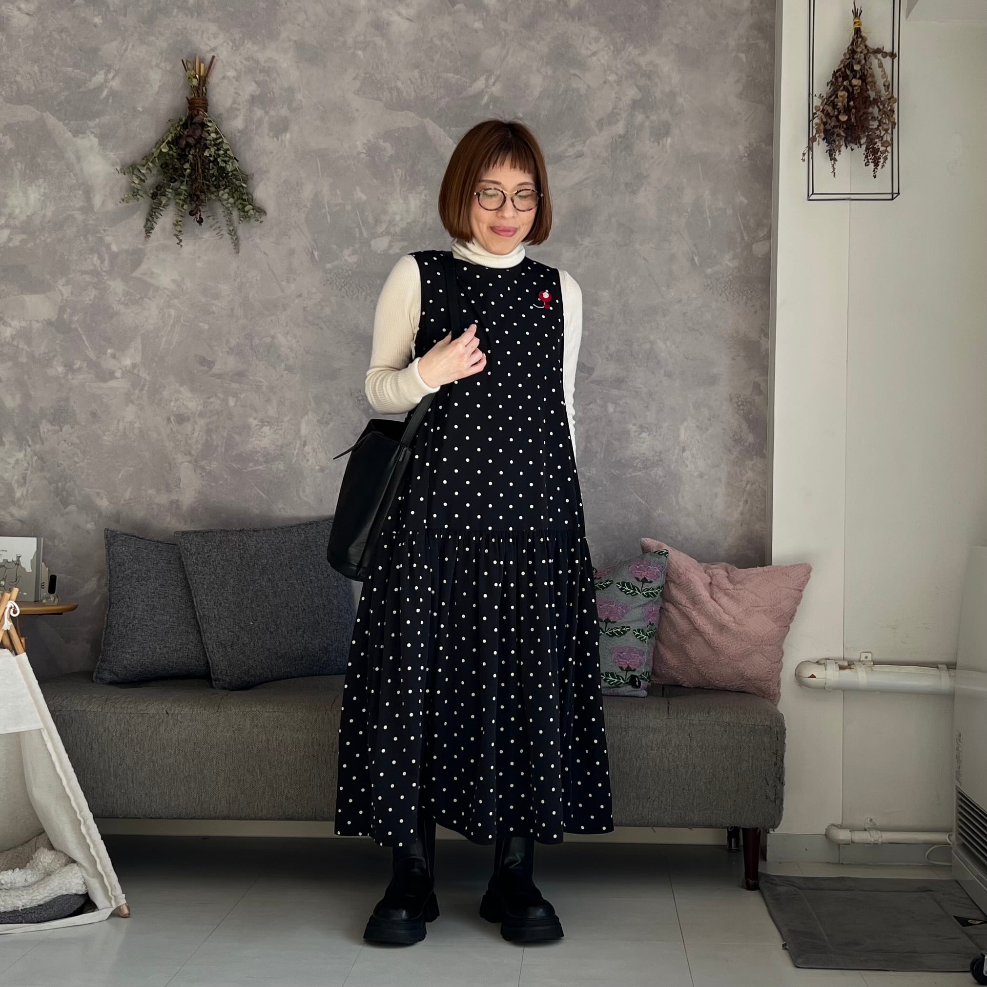 再入荷【k-205】12月お届け分(BASIC)ティアードワンピース(ドット/ブラック)