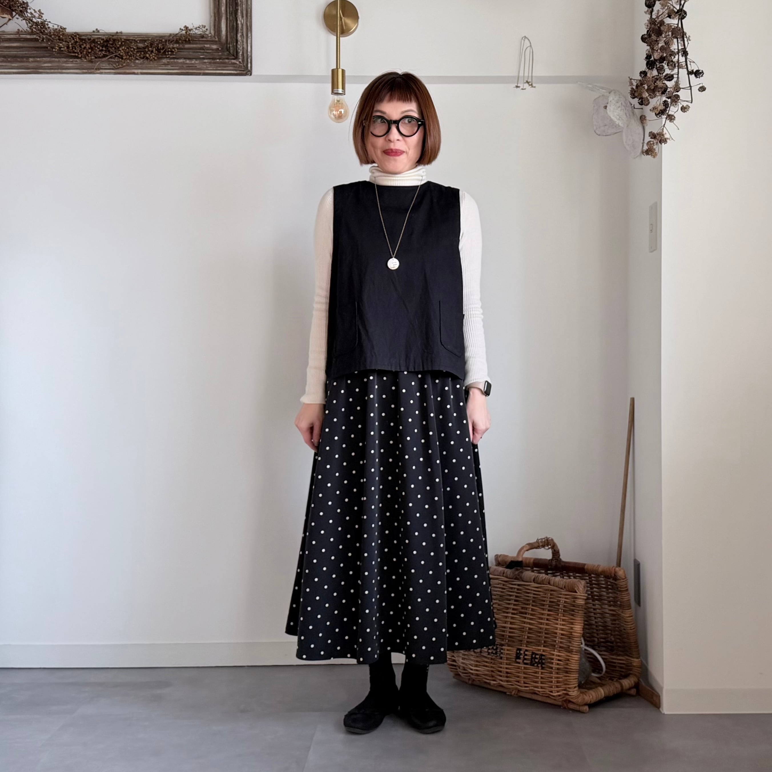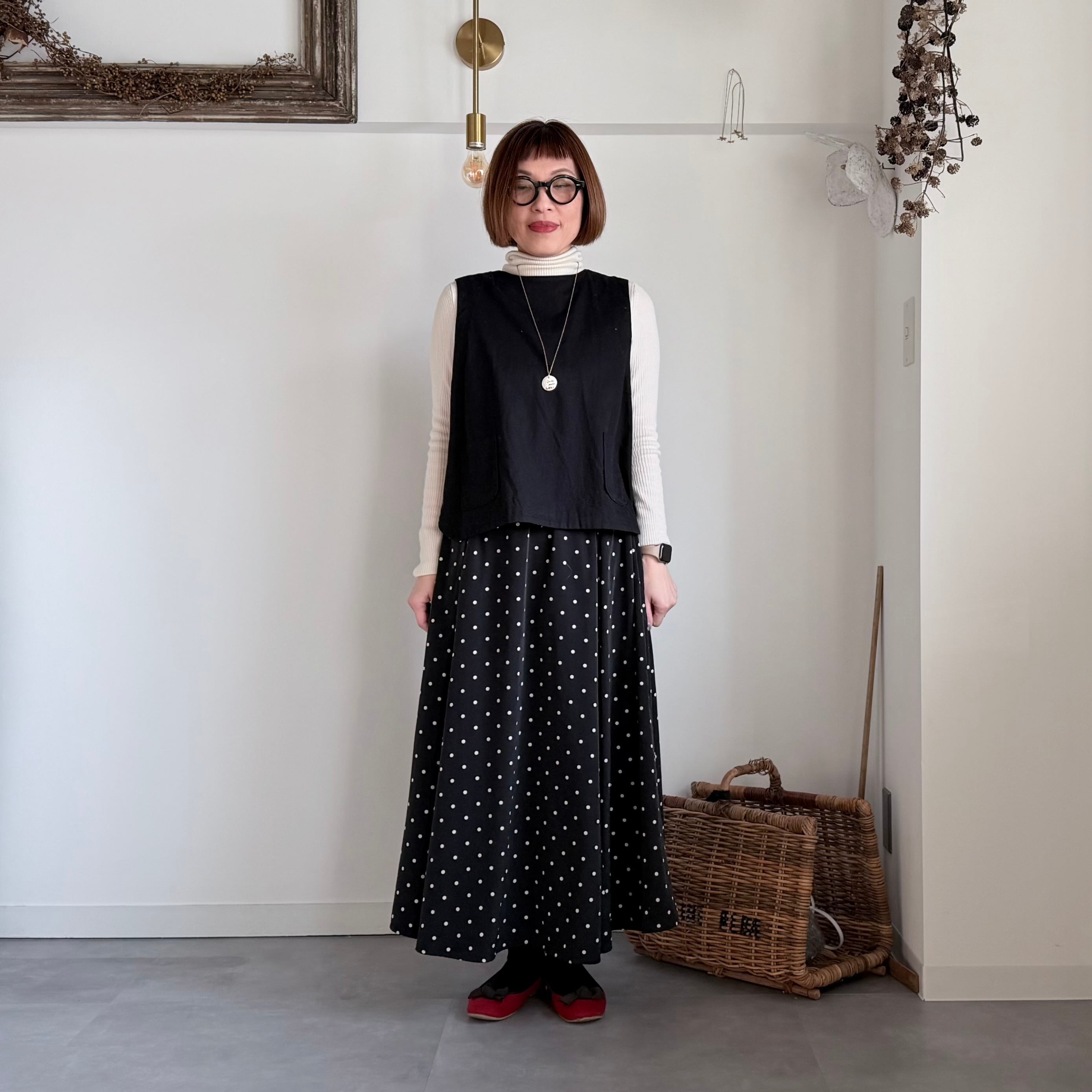上品なランダムのドット柄が、コーディネートに華やかさをプラスしますよ。