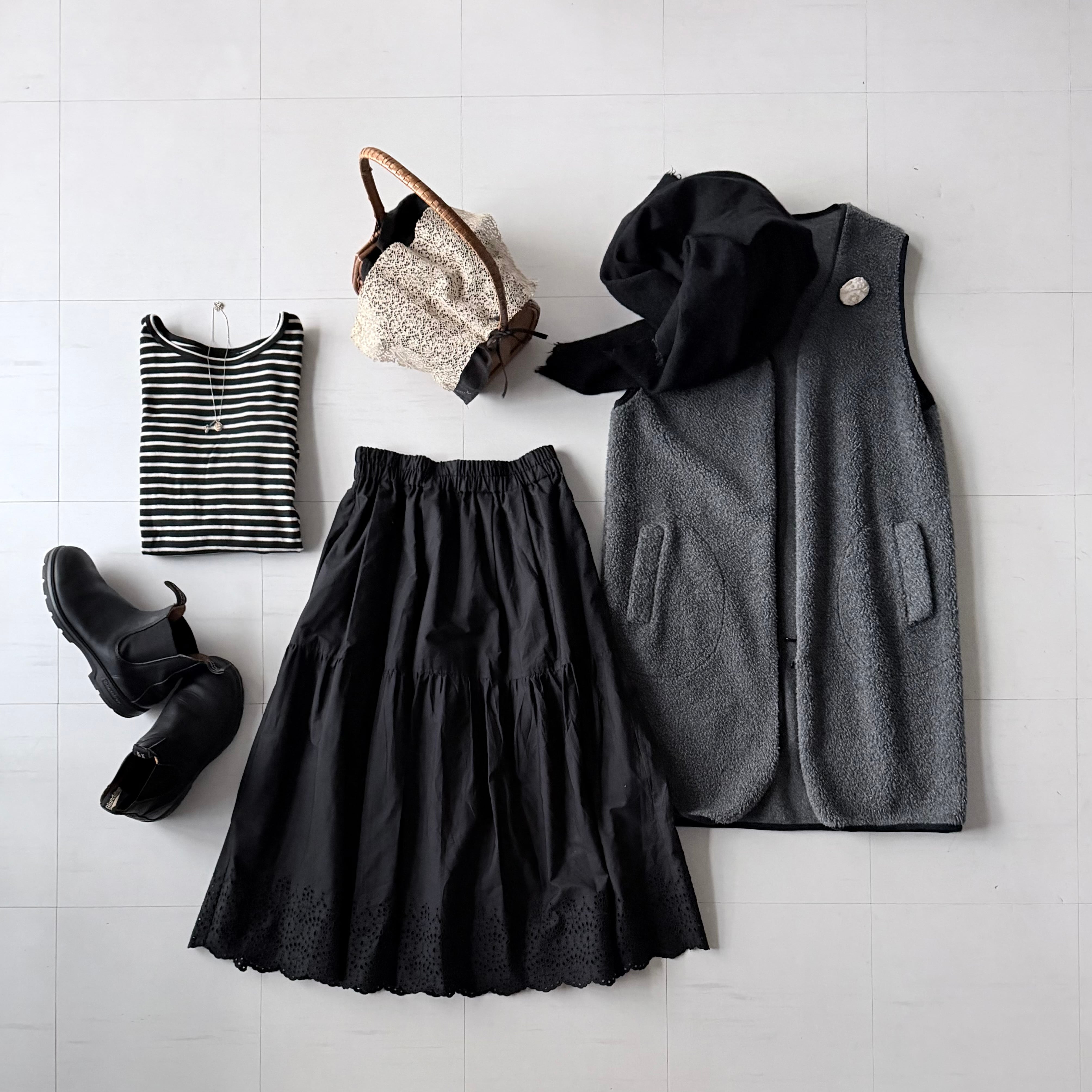 オールシーズン履ける、6枚はぎのゆるやかなフレアスカートです。