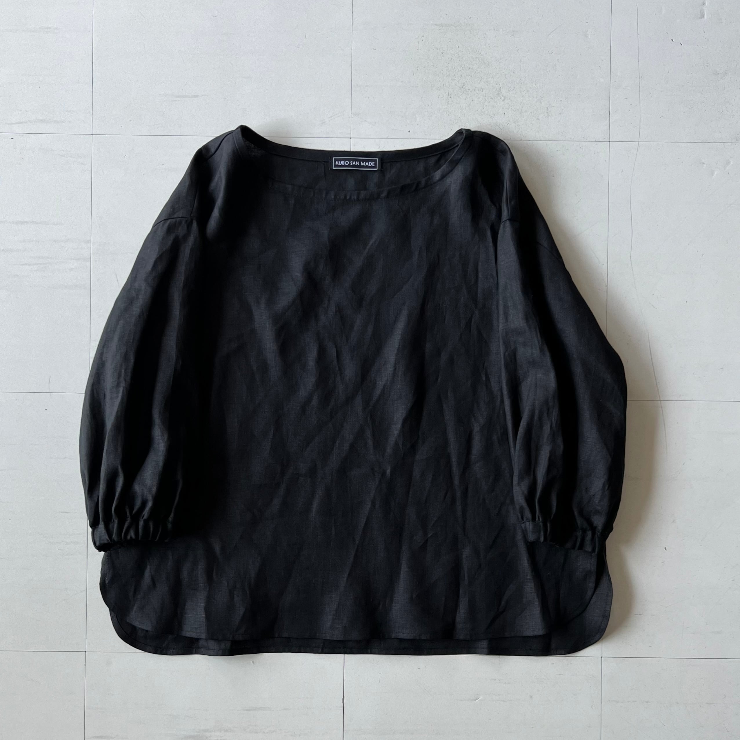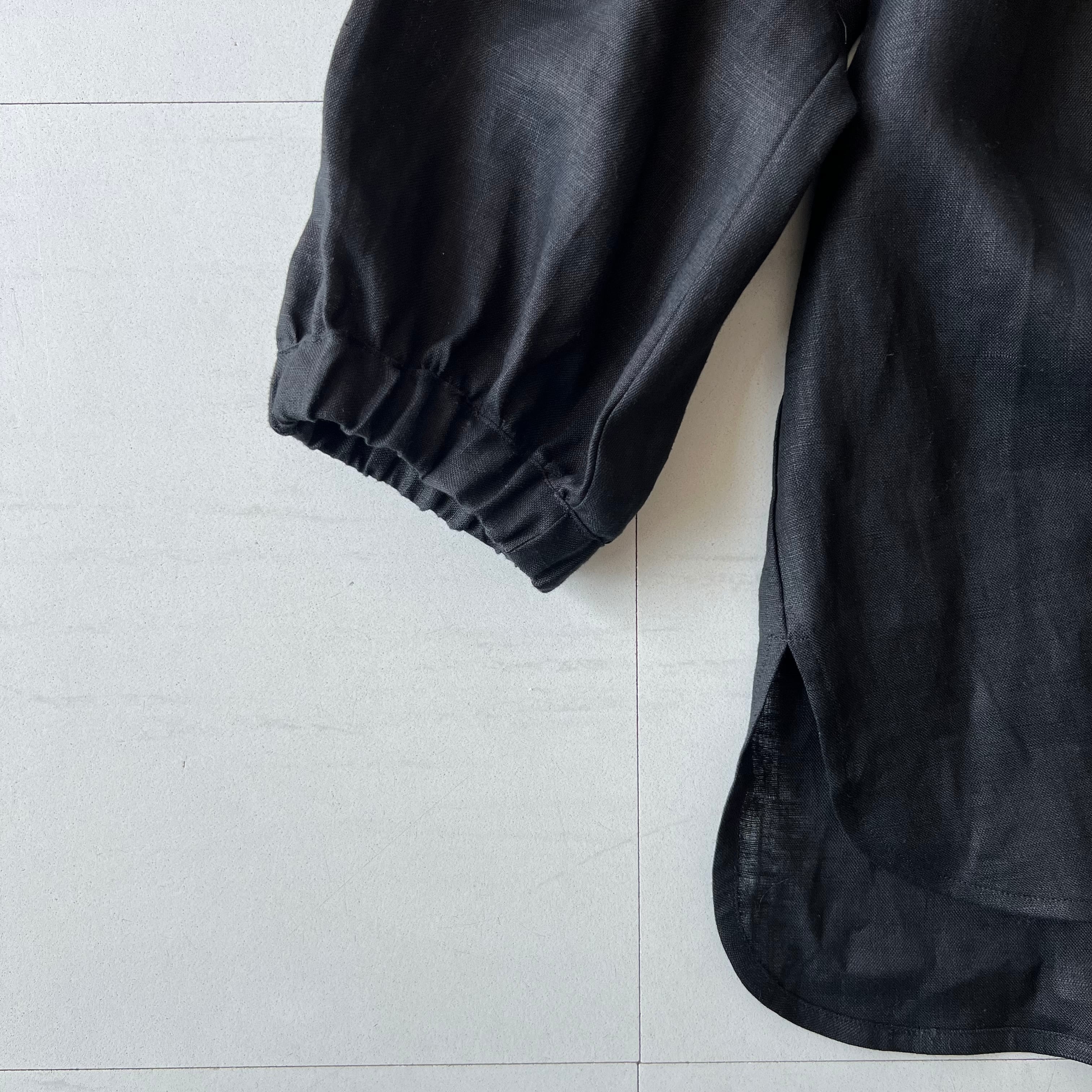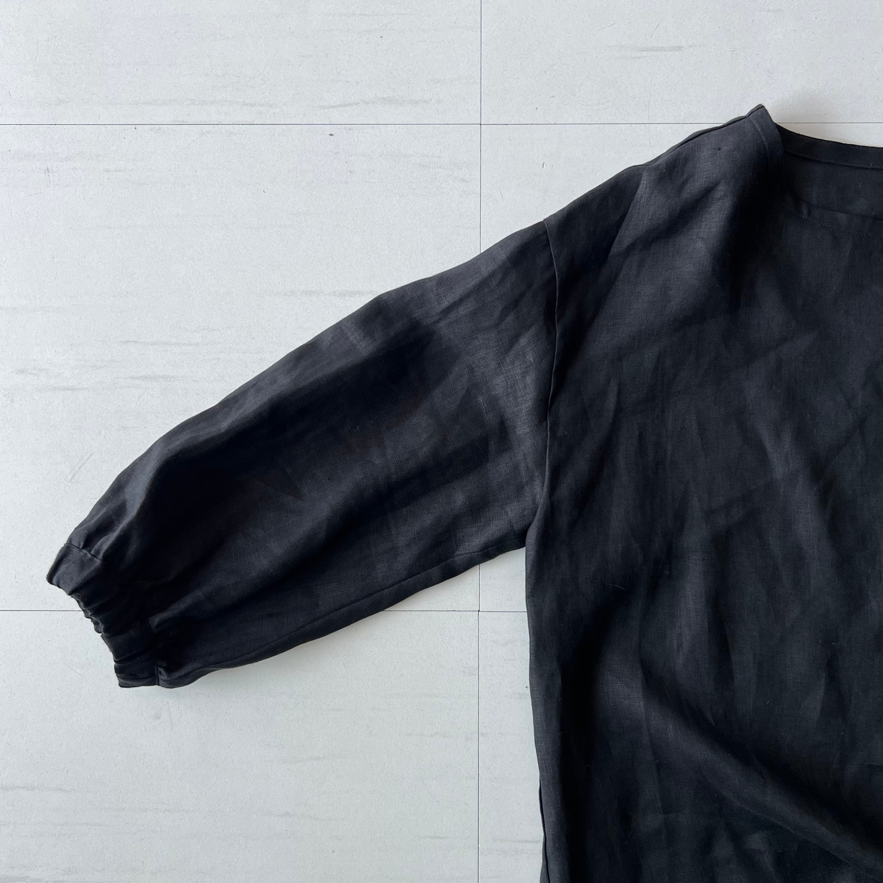 (BASIC)【k-229】リネンの7分袖チュニック(ブラック)