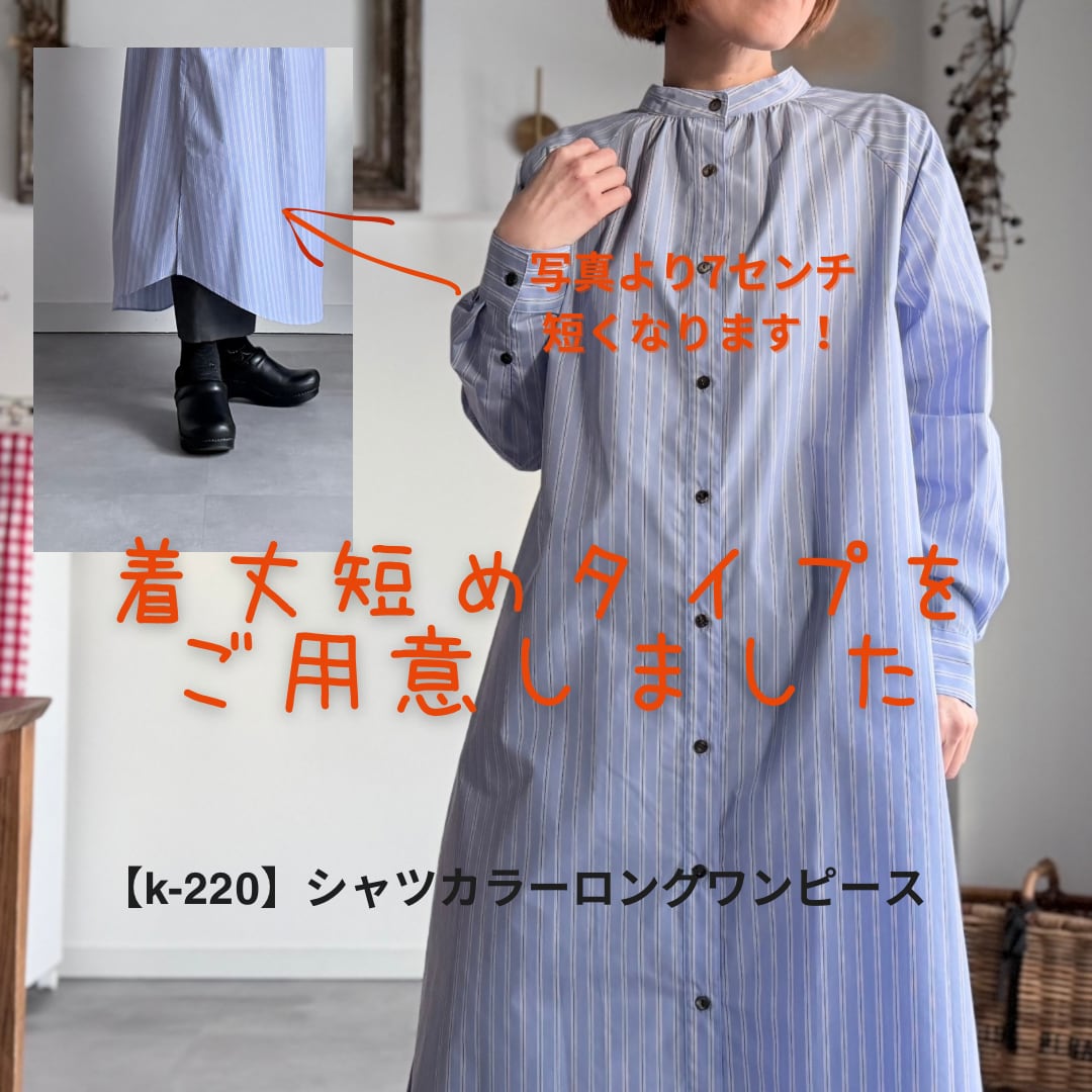 ただいまご案内中のワンピースよりも着丈を短くしたタイプご紹介です。