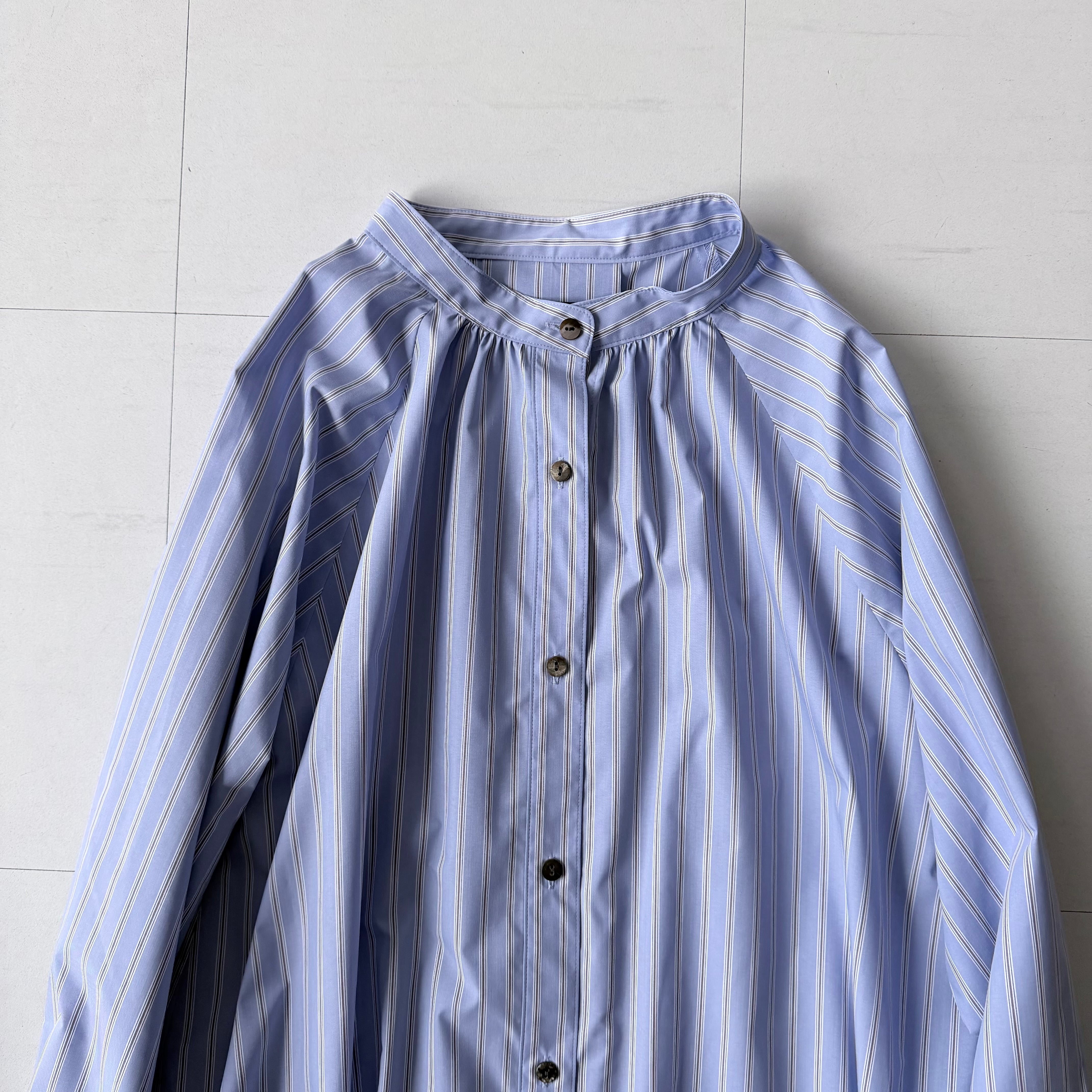 丈短め【k-220】ストライプロングシャツ(サックス)