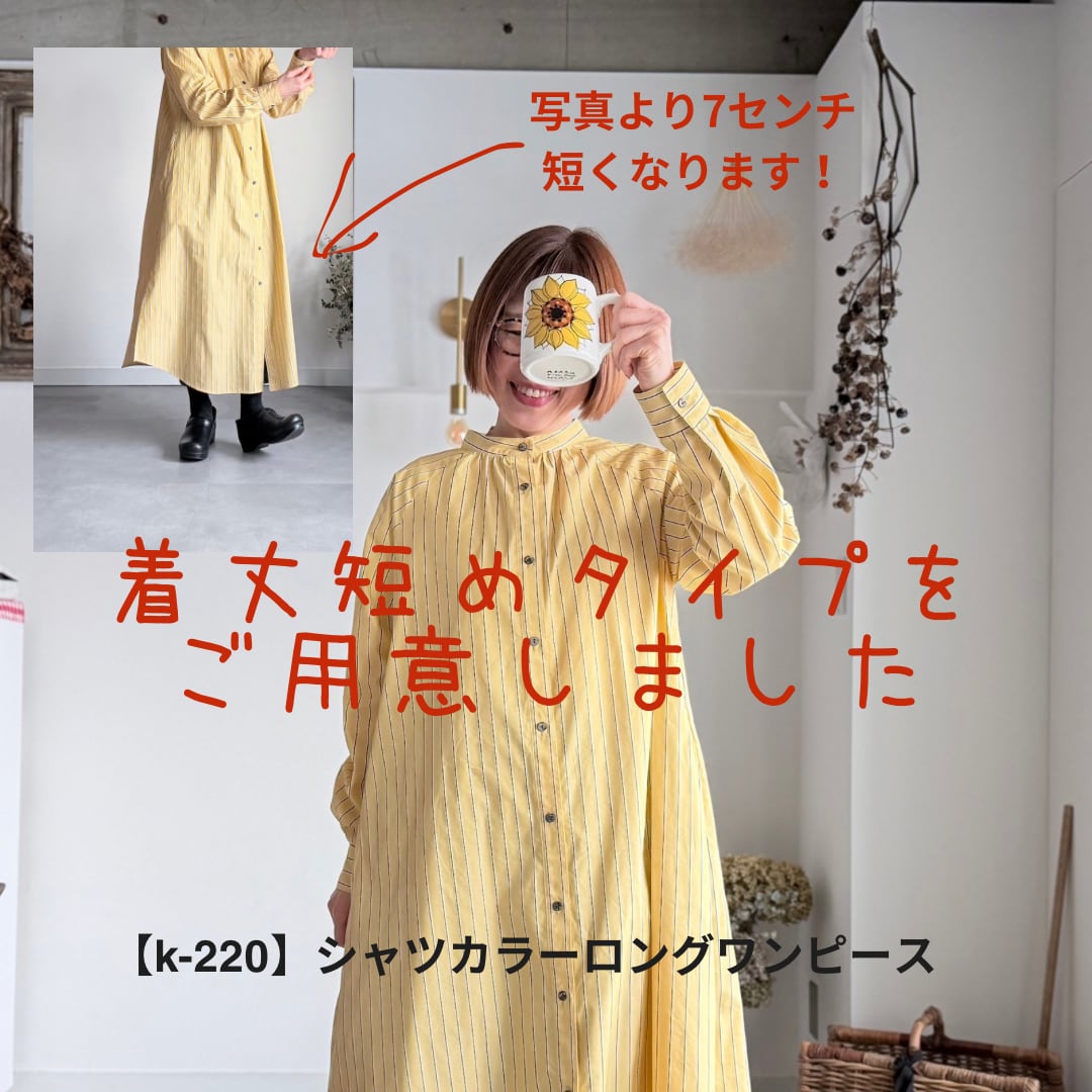 ただいまご案内中のワンピースよりも着丈を短くしたタイプご紹介です。