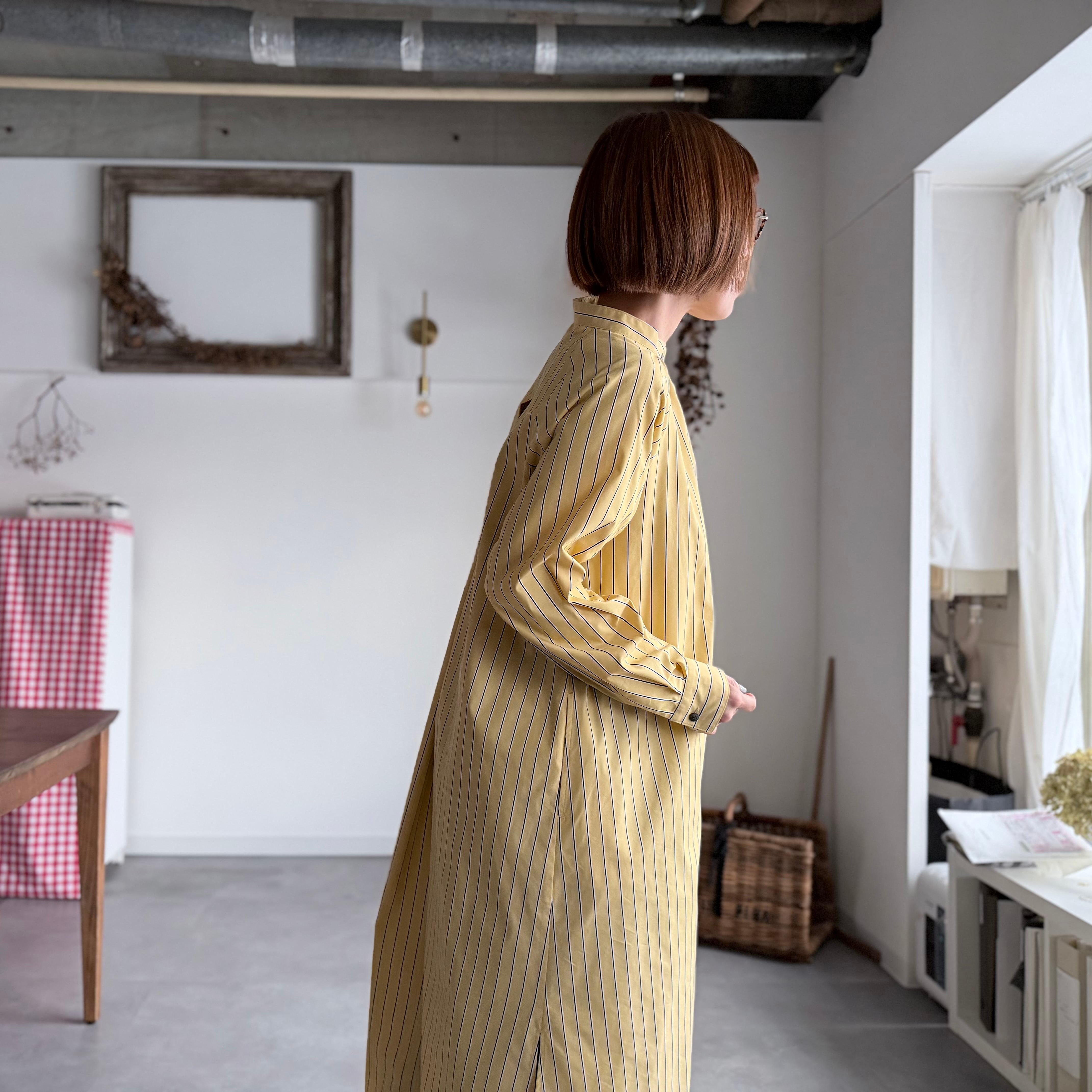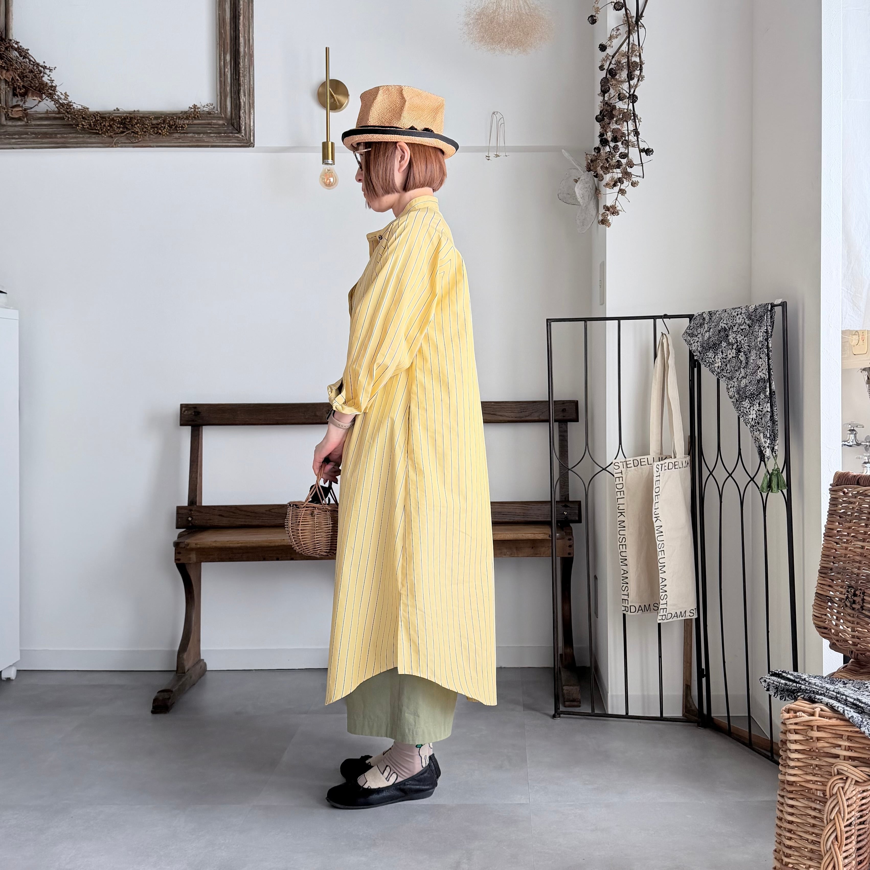 丈短め【k-220】ストライプロングシャツ(イエロー)
