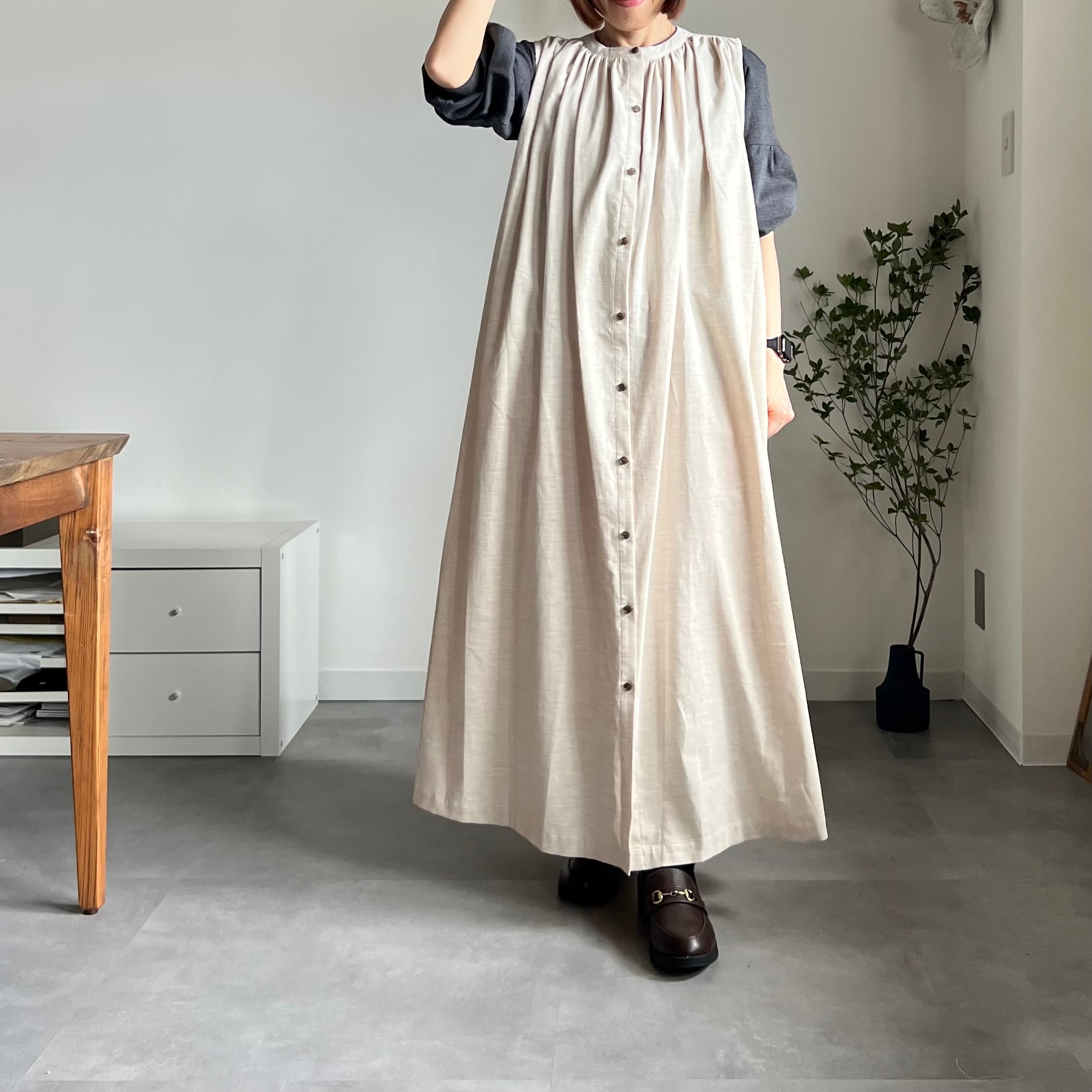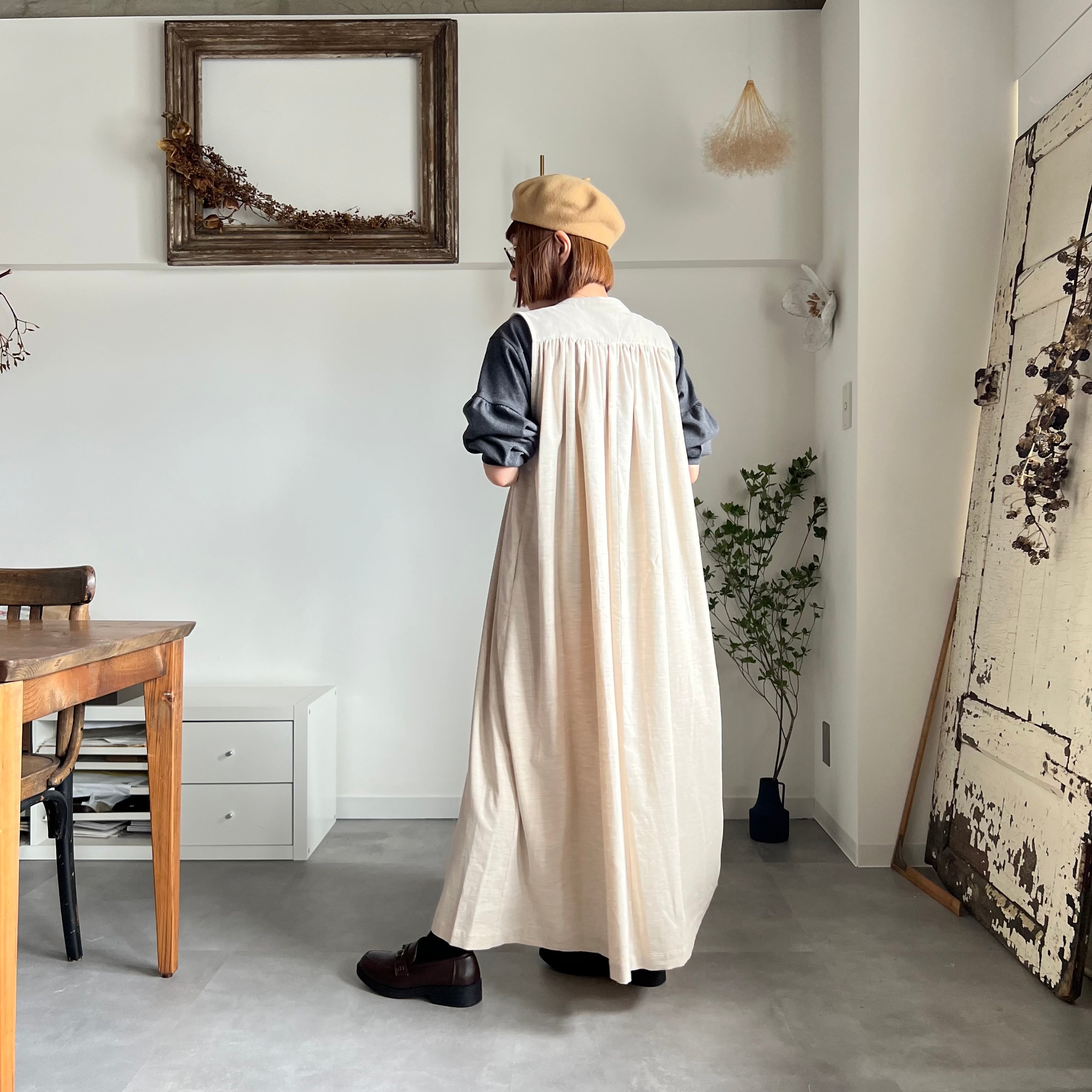 【k-73】(アイボリー) 肩ギャザーのロングワンピース