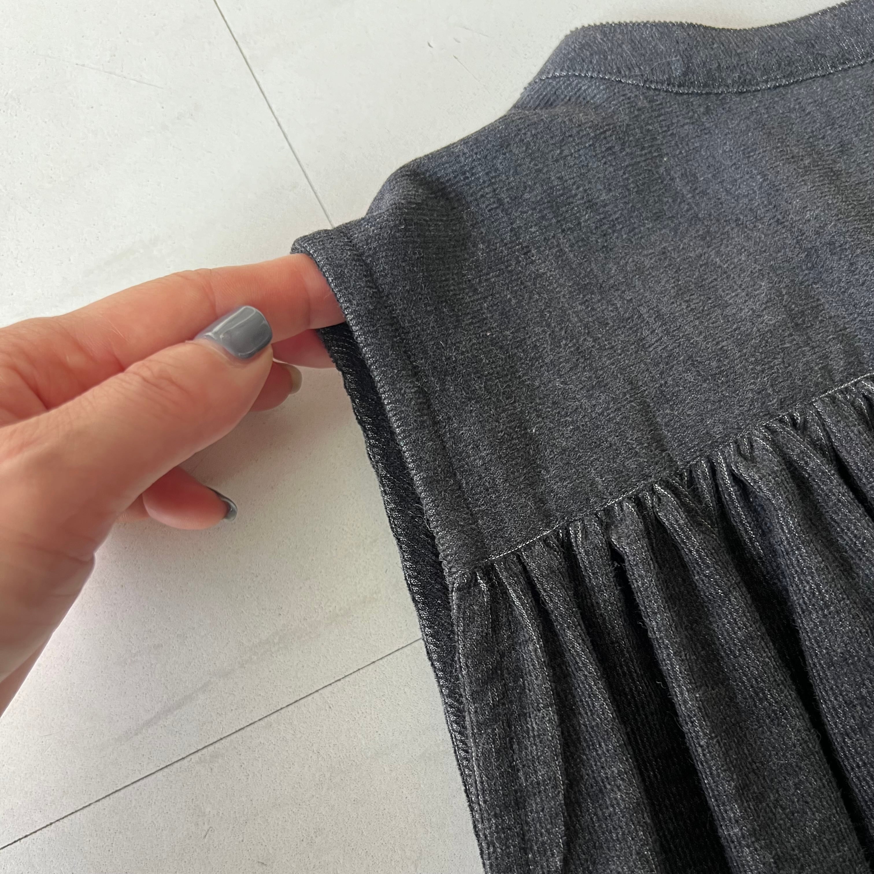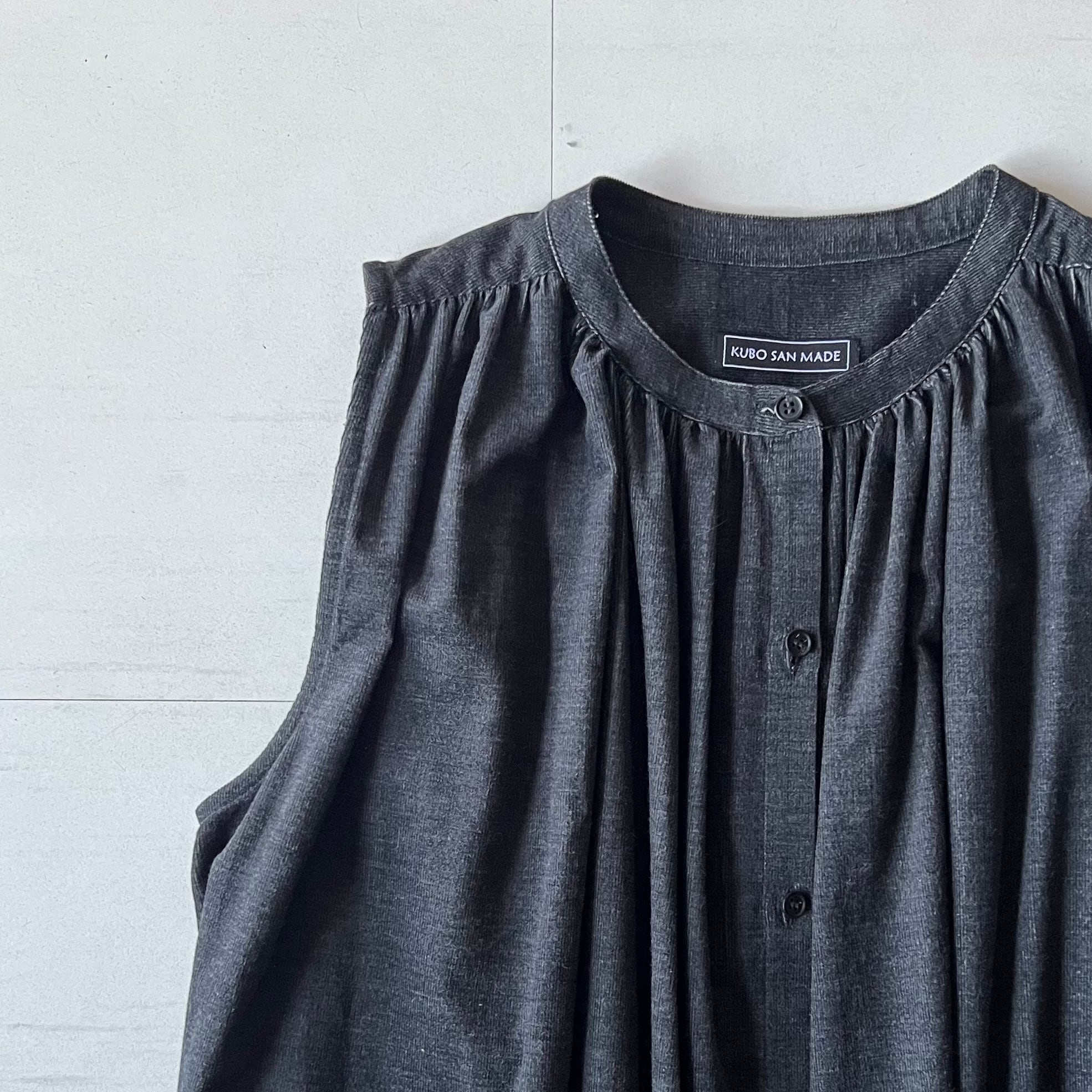 【k-73】(チャコール) 肩ギャザーのロングワンピース