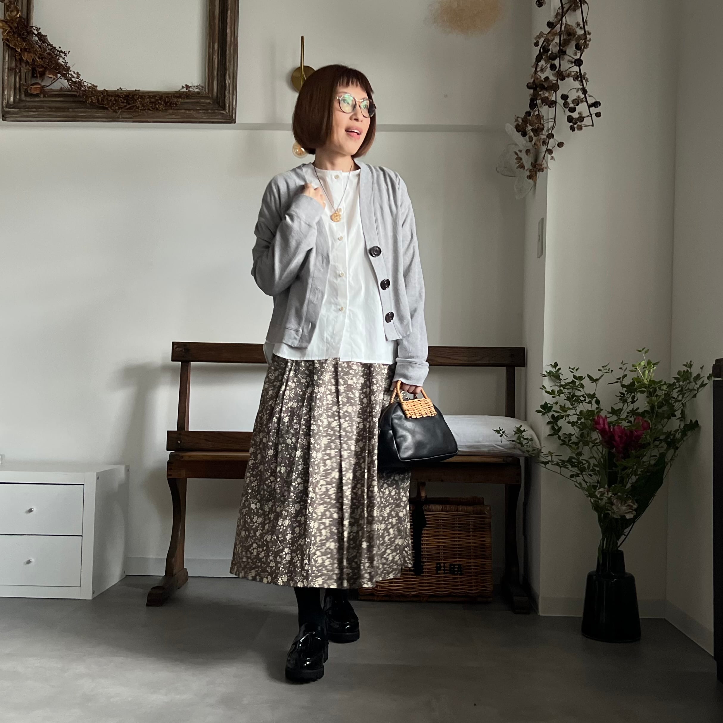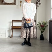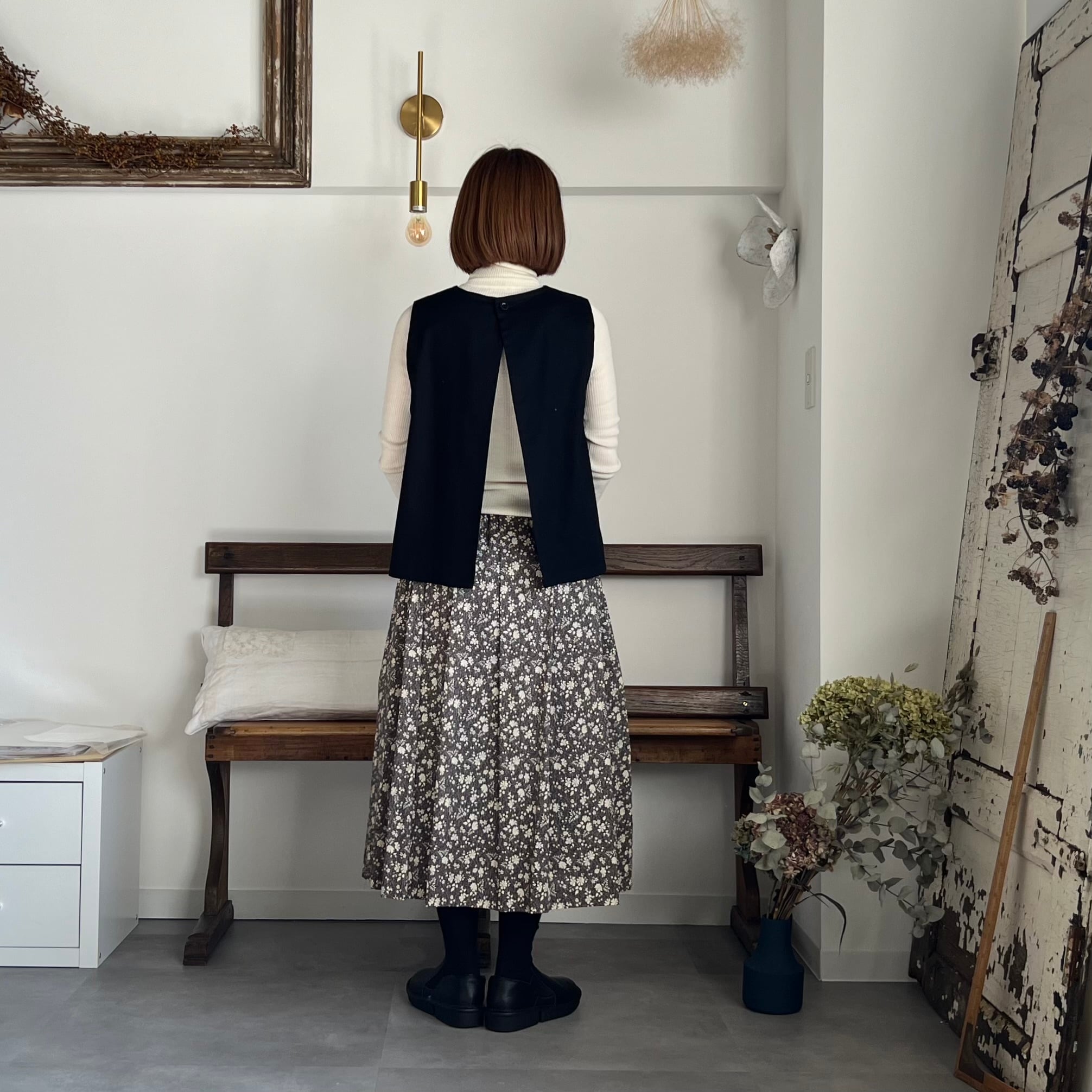【k-66】タックギャザースカート(リバティ・キャペルペッパー ブラウン系)