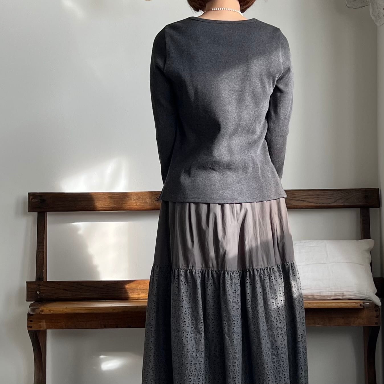 [K-134] (gray ) Long-Sleeved Ribbed Cut & Sewn