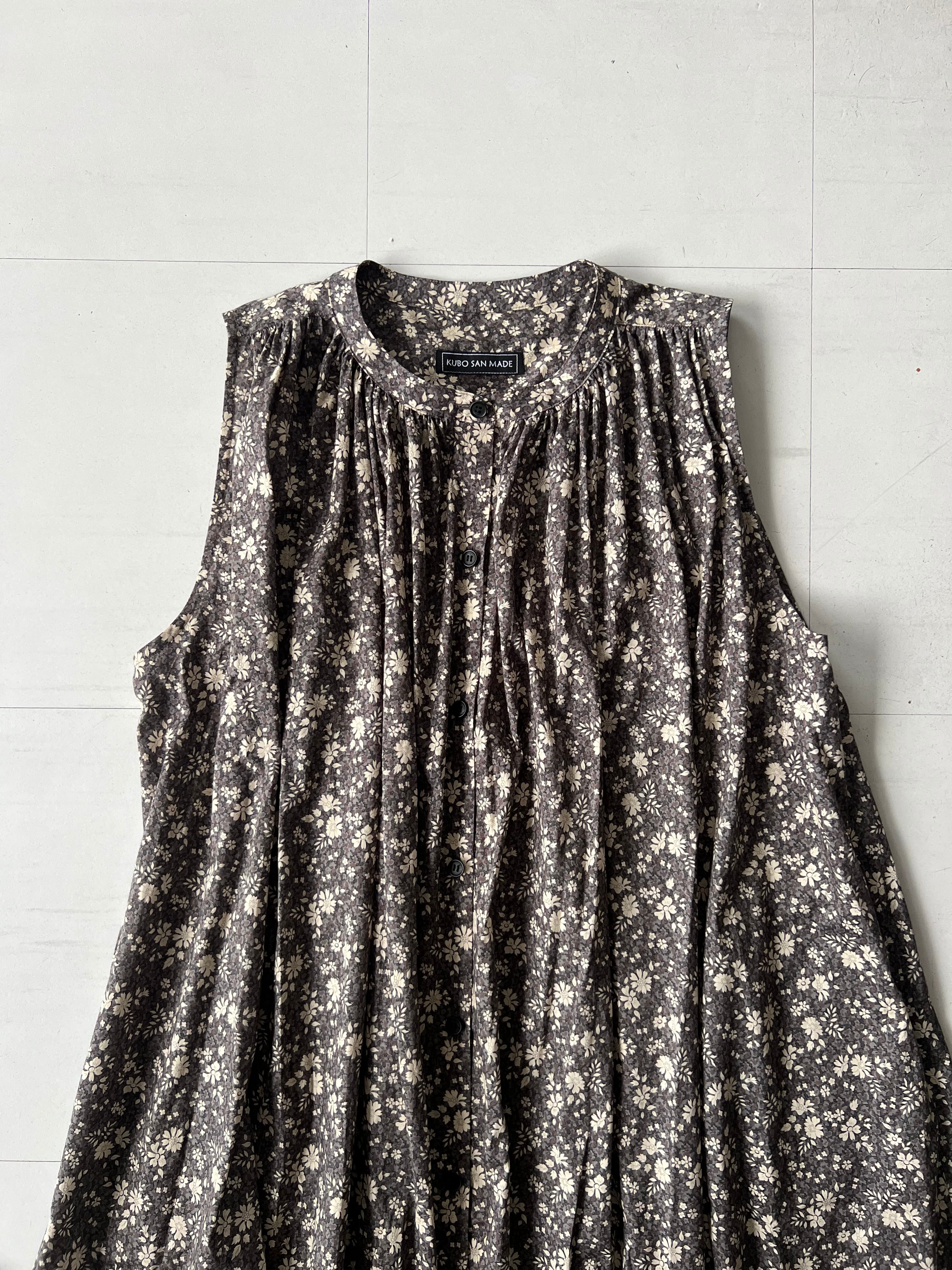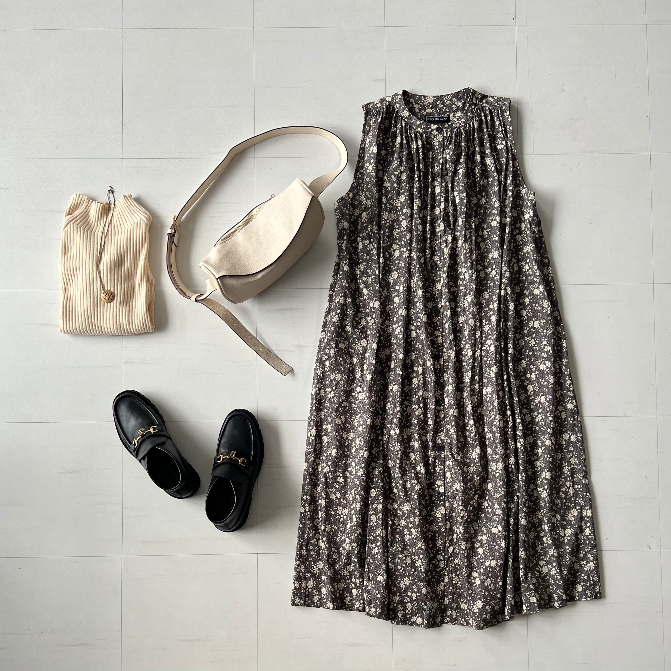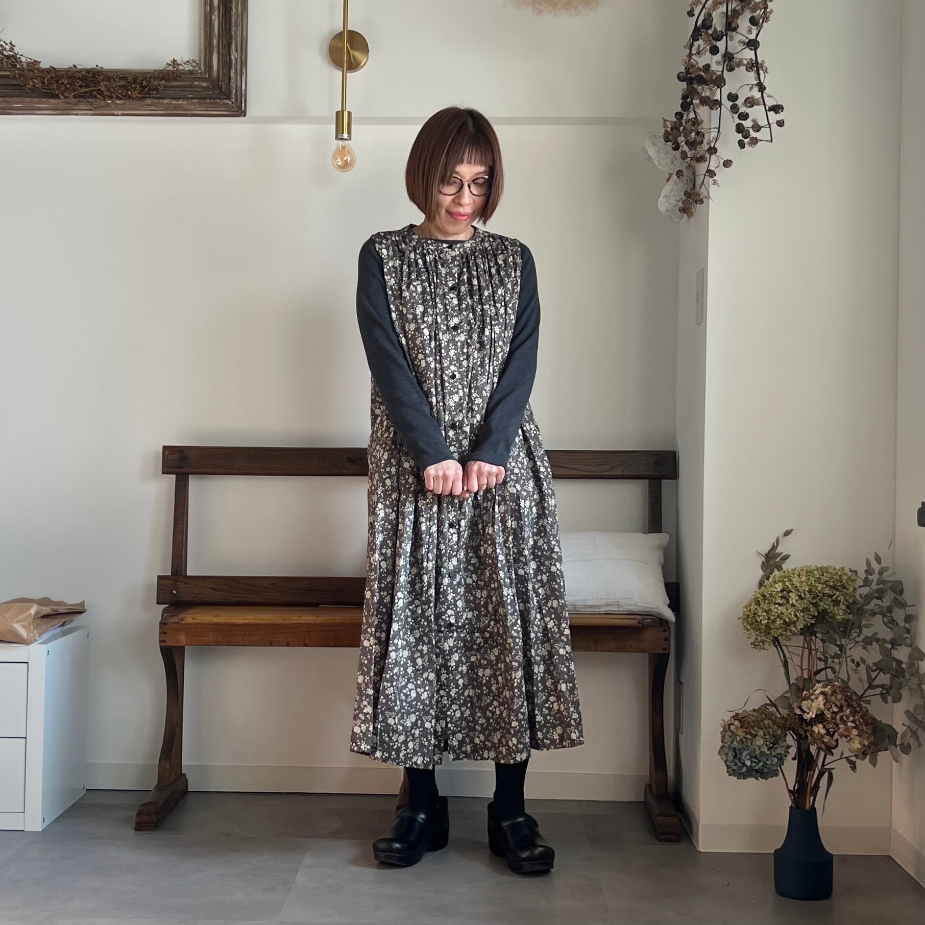 【k-168】 肩ギャザーのロングワンピース(リバティ・キャペルペッパーブラウン系)